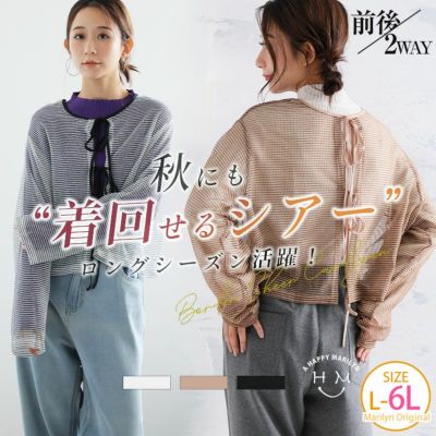 大きいサイズ 前後2way クロシェ風 メッシュ リボン カーディガン
