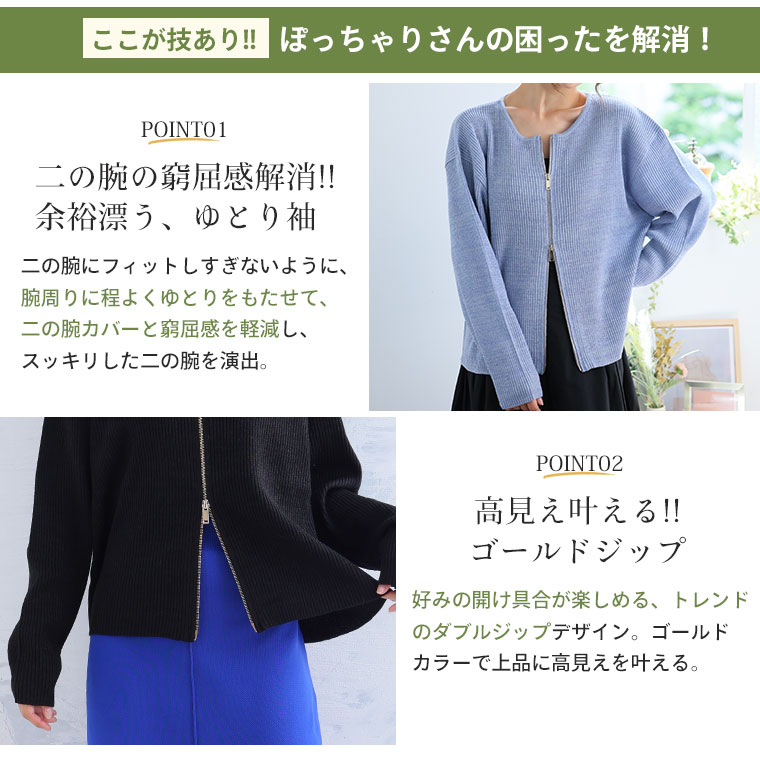ぽっちゃりさんに着て欲しい 細魅せ美人ラメジップカーデ