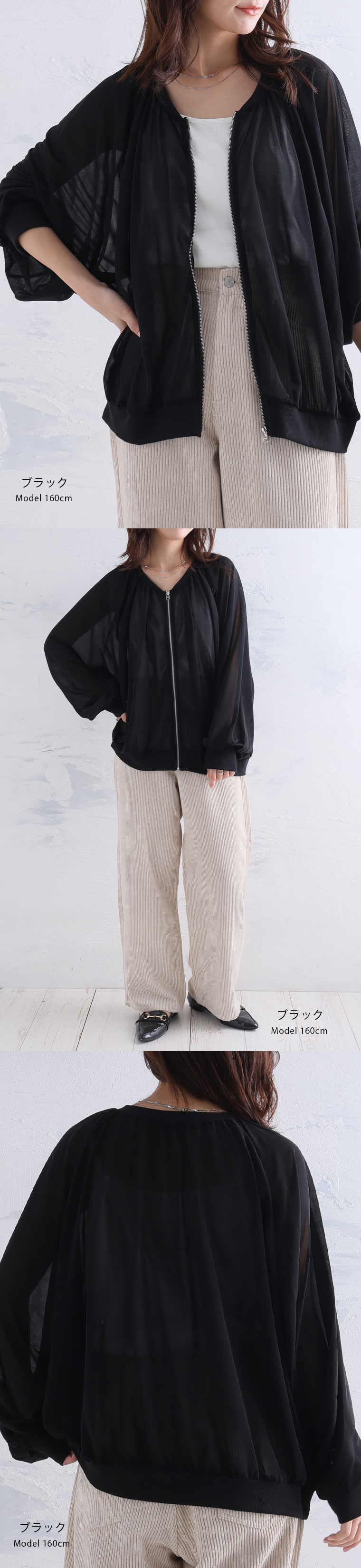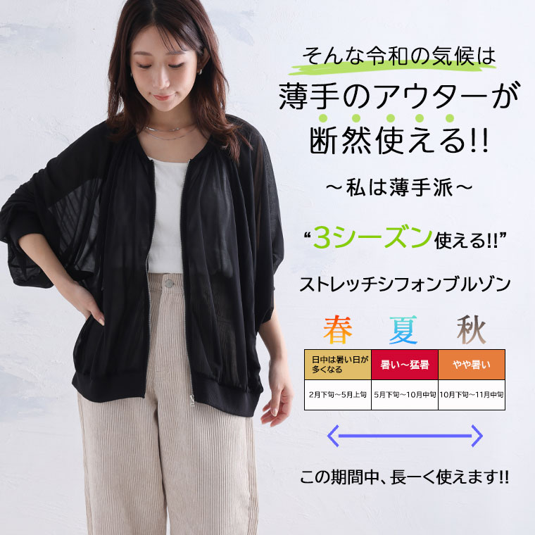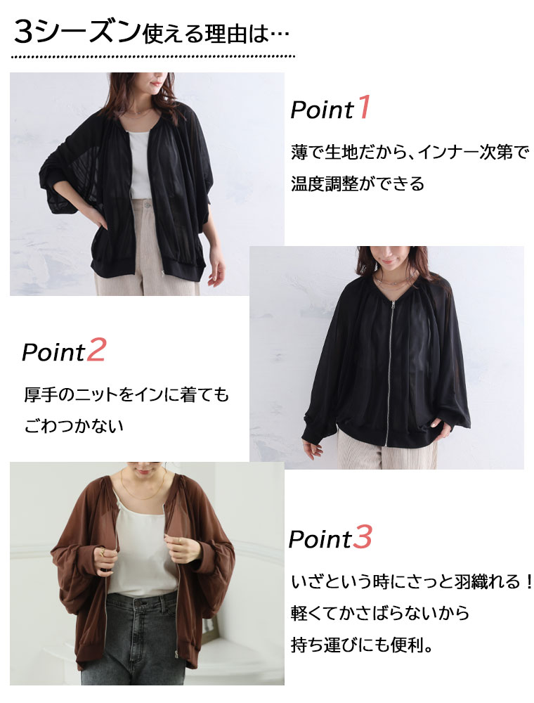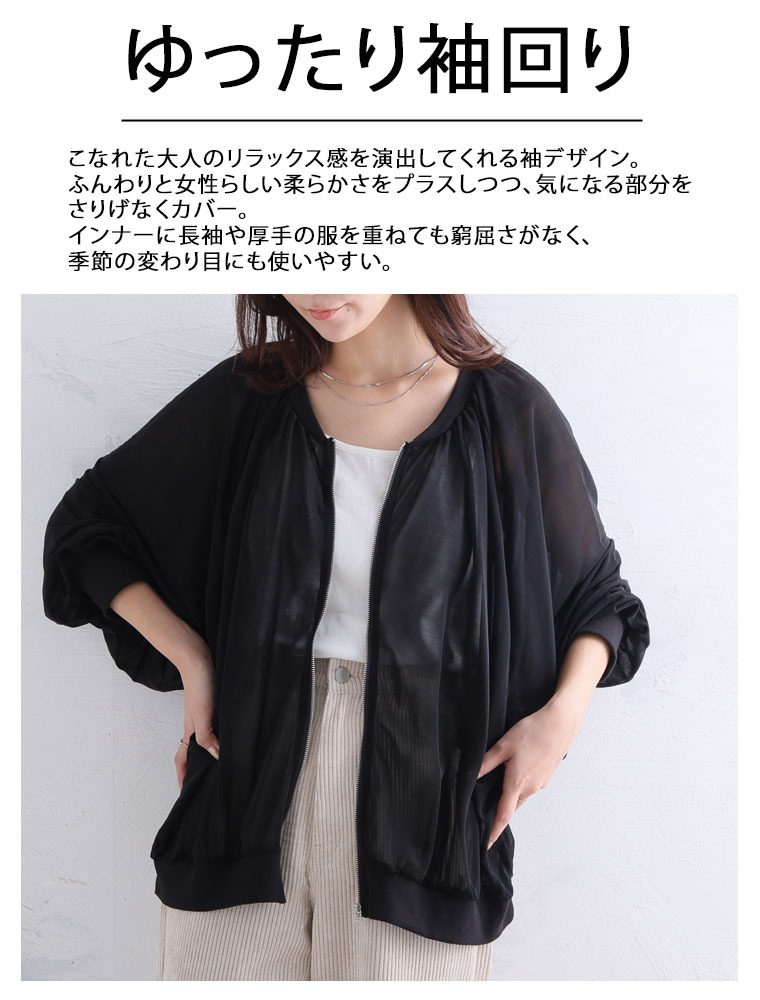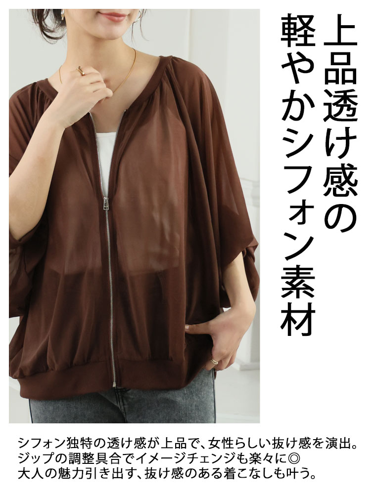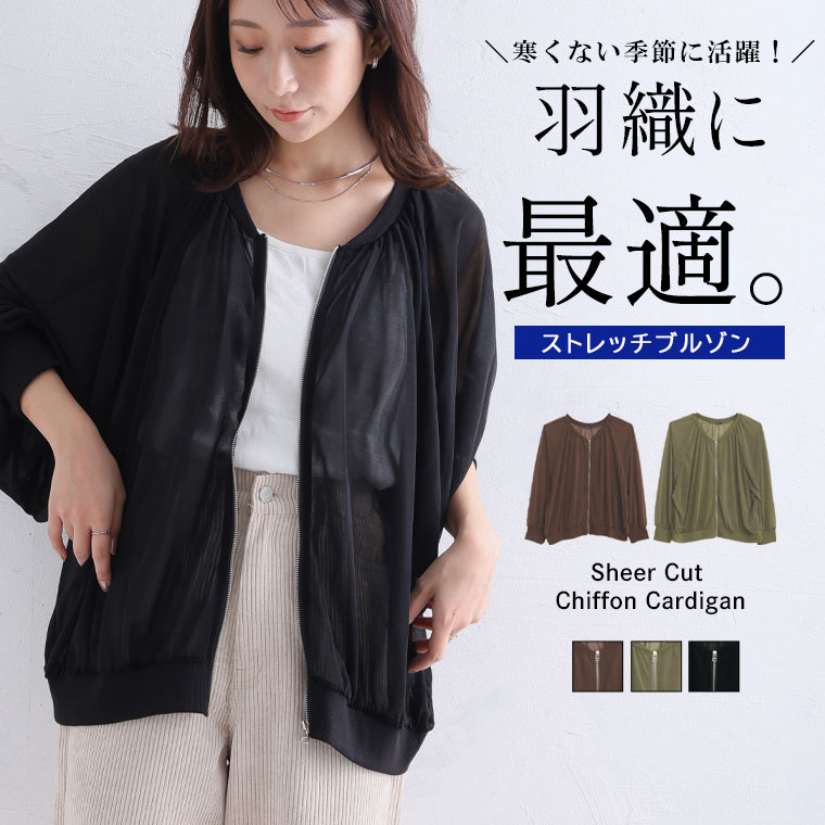 3. 大きいサイズ 伸びる! 着心地さらり シアー カットシフォン カーデ ブルゾン ストレッチ
