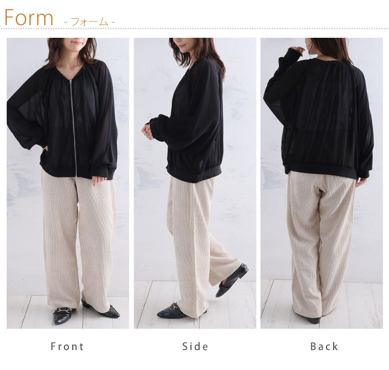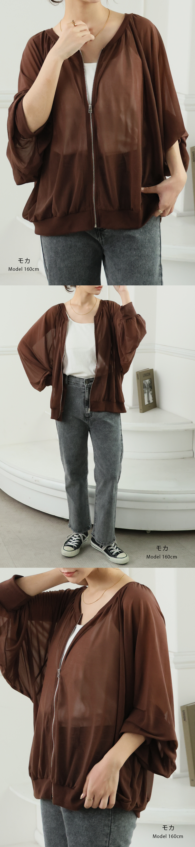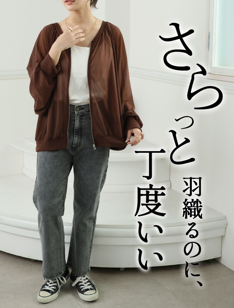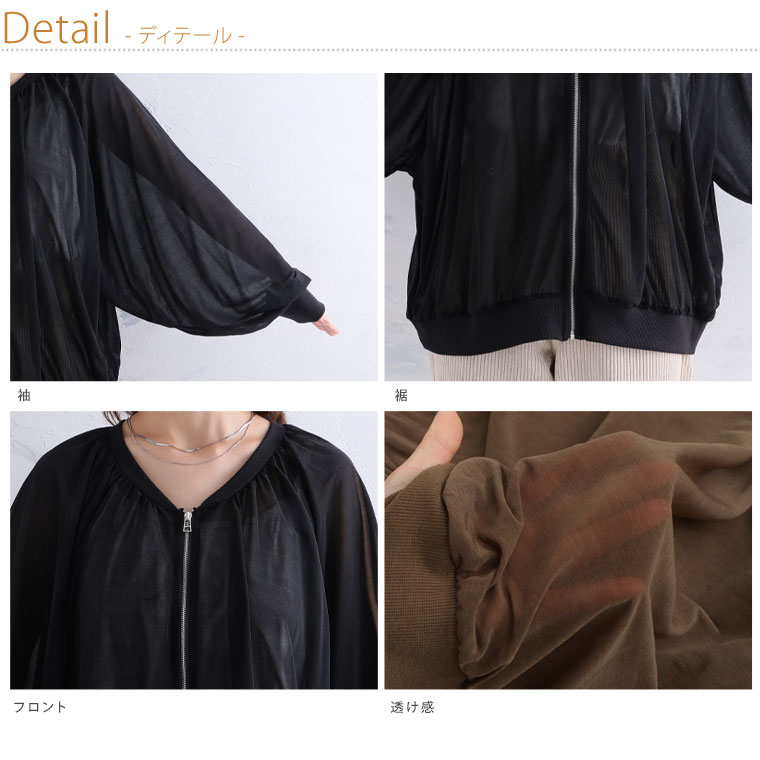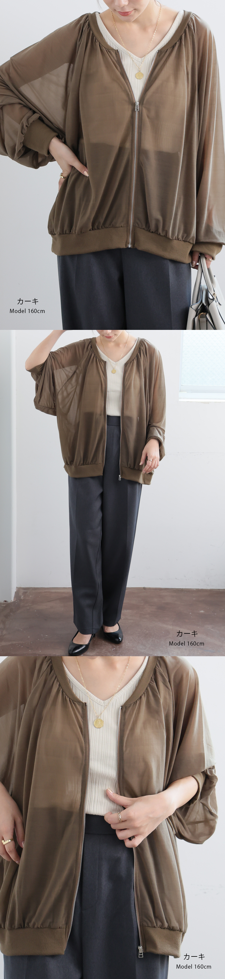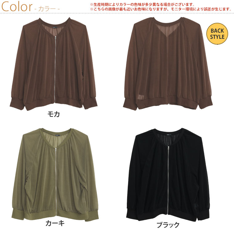 3. 大きいサイズ 伸びる! 着心地さらり シアー カットシフォン カーデ ブルゾン ストレッチ