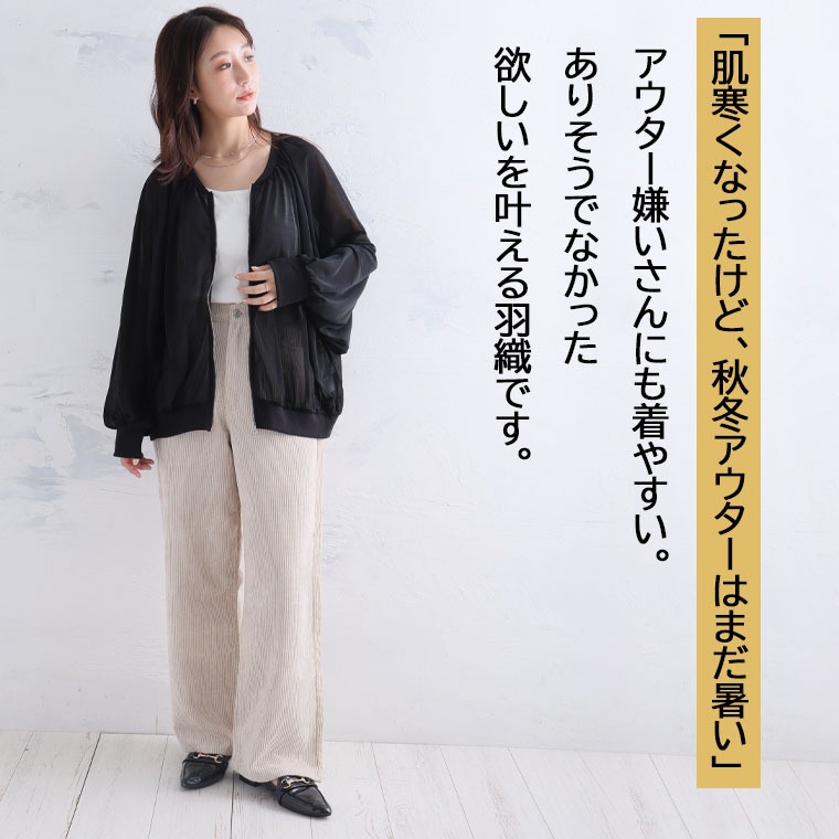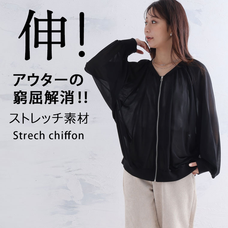 大きいサイズ 伸びる! 着心地さらり シアー カットシフォン カーデ ブルゾン ストレッチ