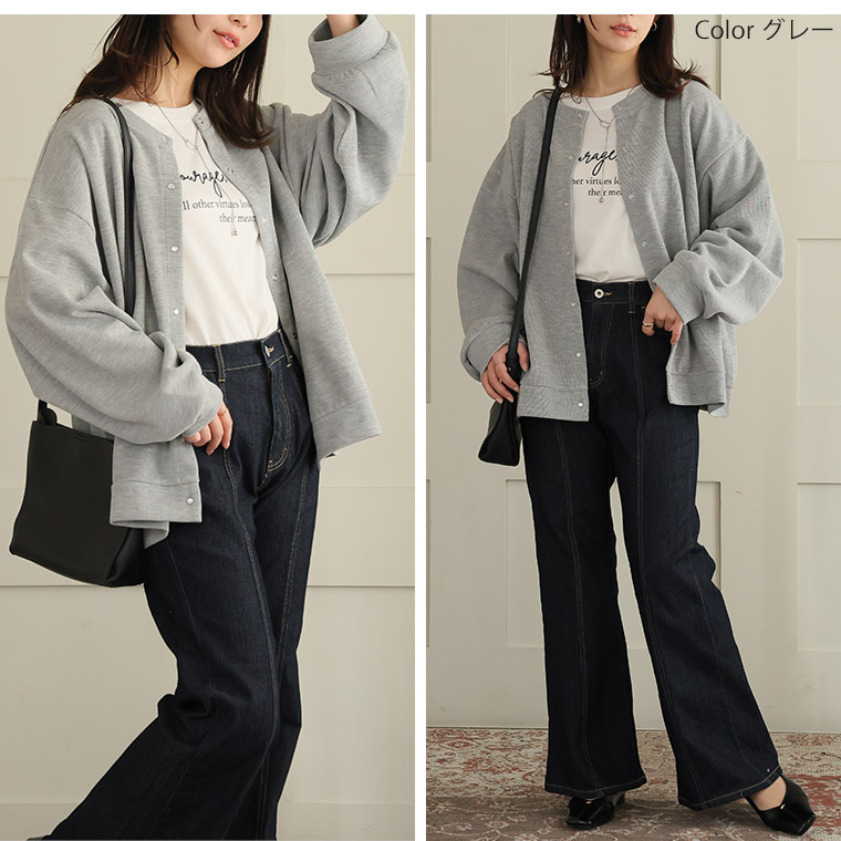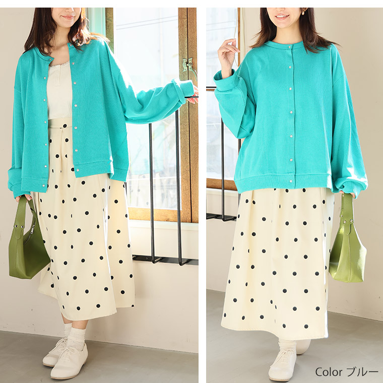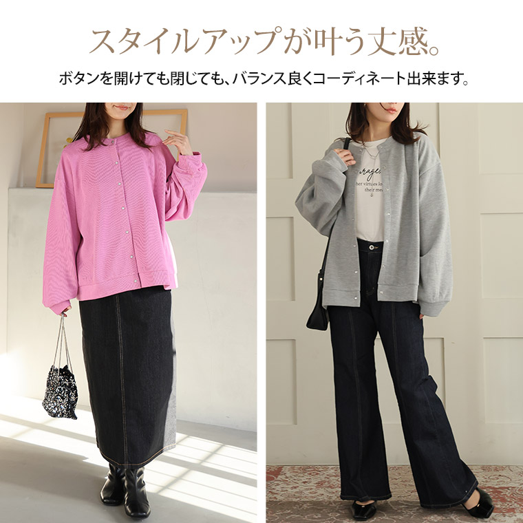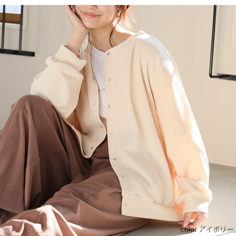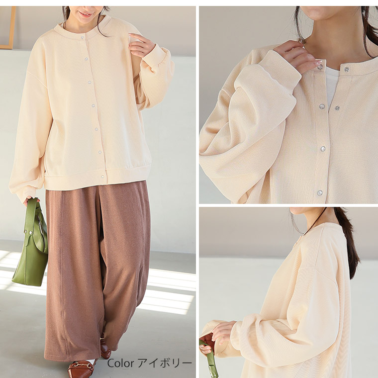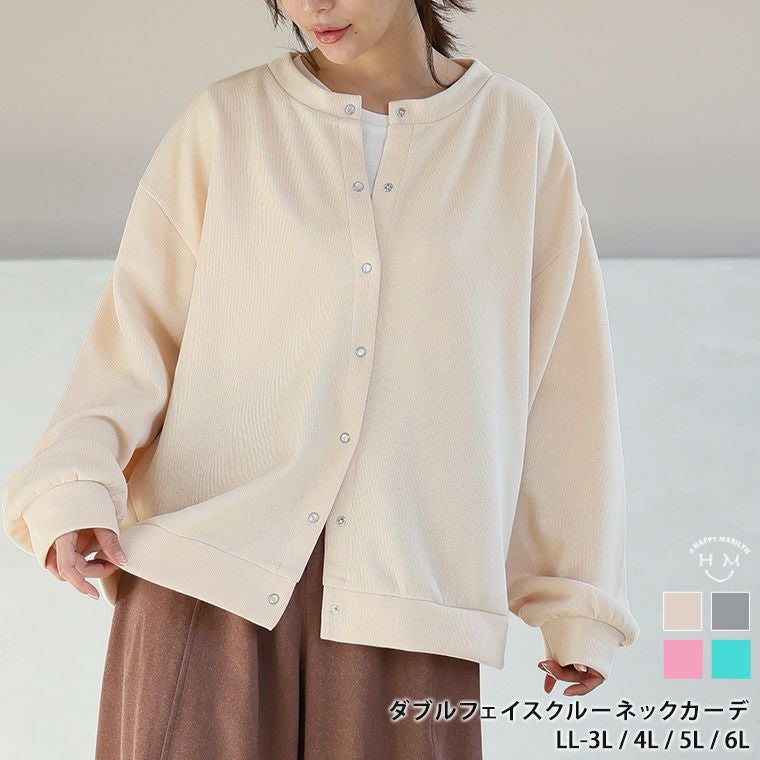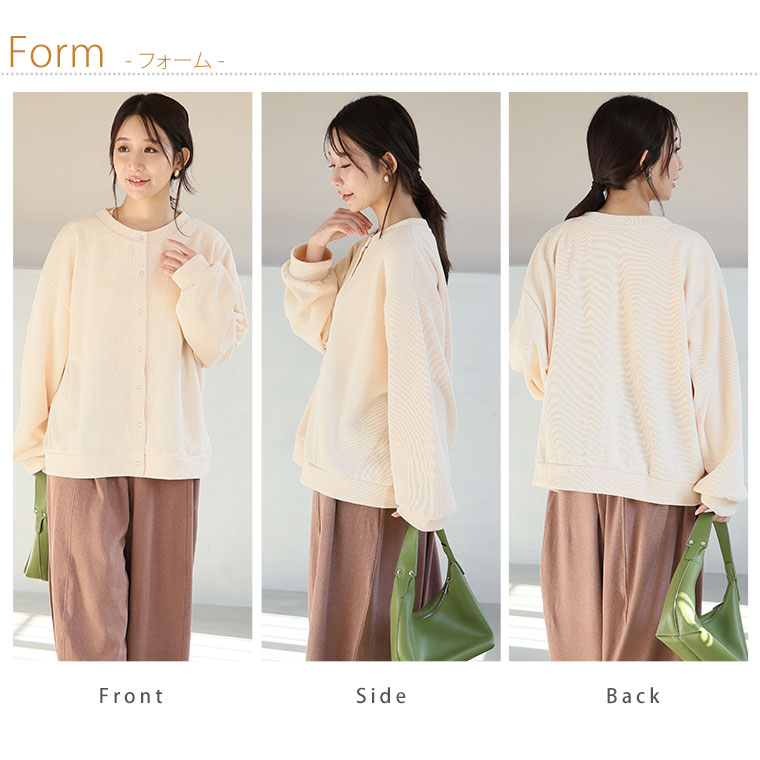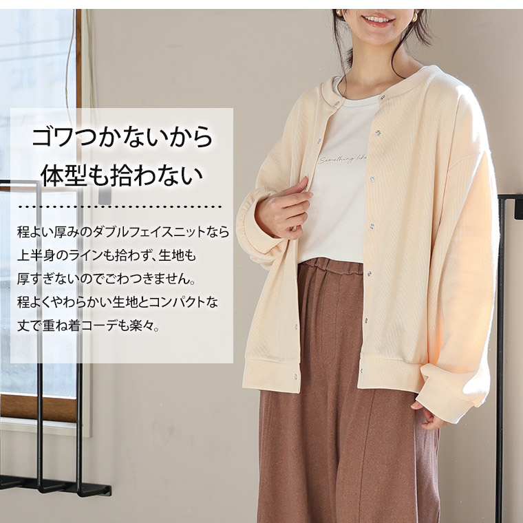 体型を拾いにくいダブルフェイスニットカーデ。