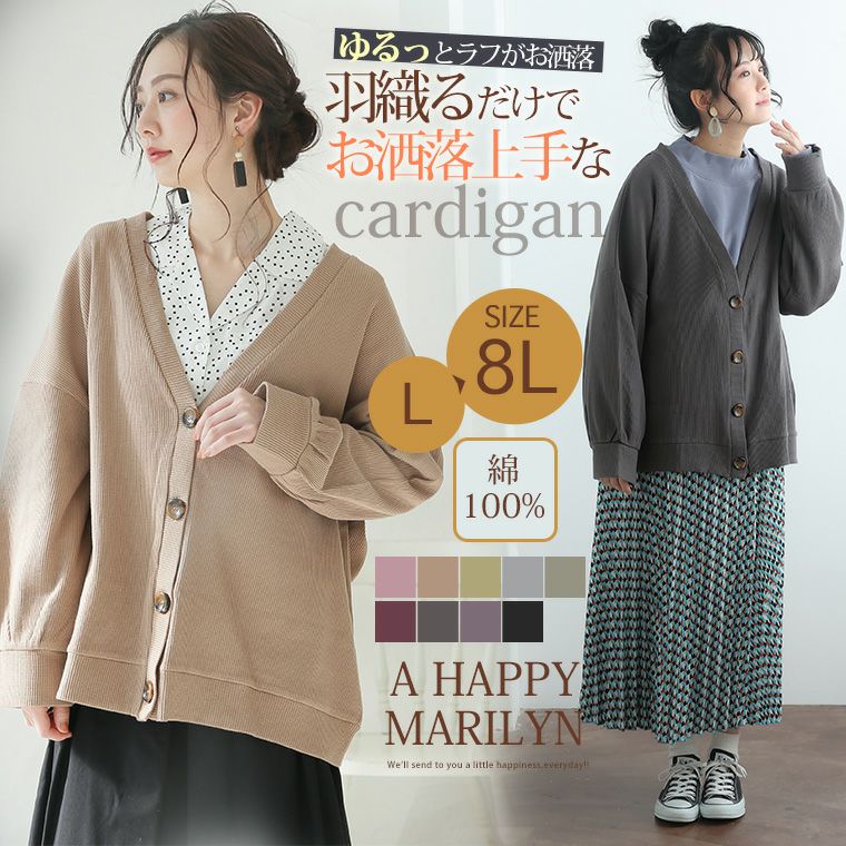 大きいサイズレディースファッション・洋服通販サイトA HAPPY MARILYN(ハッピーマリリン)では、トレンドをさり気なく取り入れたMから8Lサイズまでポチャかわコーデを通販で豊富にご用意! 20代・30代・40代の大人の女性におすすめなカーディガンはもちろん、シーズン毎のトレンドアイテム、コーディネートの参考になる特集コンテンツ、お得なセール情報が目白押しです。最新のファストファッションを提案している大きいサイズレディースファッション・洋服通販サイトA HAPPY MARILYN(ハッピーマリリン)で、是非ファッションを楽しんでみて下さい。