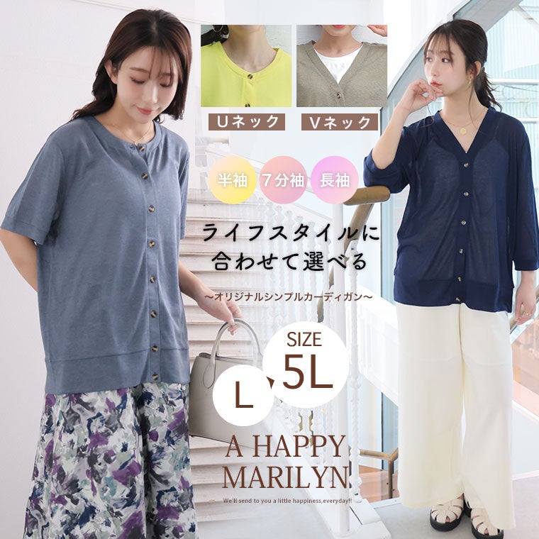 大きいサイズレディースファッション・洋服通販サイトA HAPPY MARILYN(ハッピーマリリン)では、トレンドをさり気なく取り入れたMから8Lサイズまでポチャかわコーデを通販で豊富にご用意! 20代・30代・40代の大人の女性におすすめなカーディガンはもちろん、シーズン毎のトレンドアイテム、コーディネートの参考になる特集コンテンツ、お得なセール情報が目白押しです。最新のファストファッションを提案している大きいサイズレディースファッション・洋服通販サイトA HAPPY MARILYN(ハッピーマリリン)で、是非ファッションを楽しんでみて下さい。