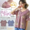 肩シャーリングで程よくフィット☆花柄×ストライプフロントタック五分袖ブラウス