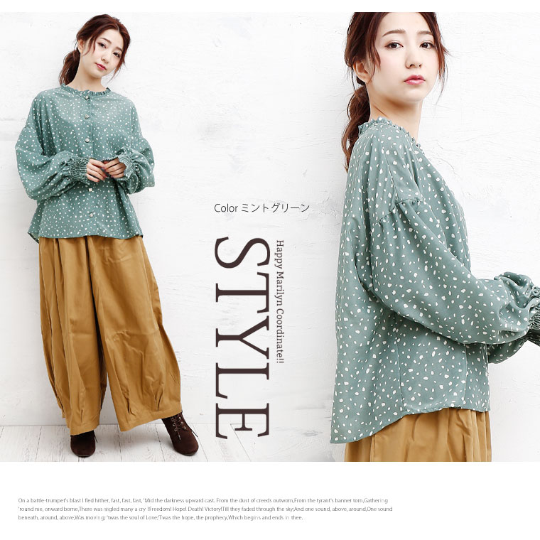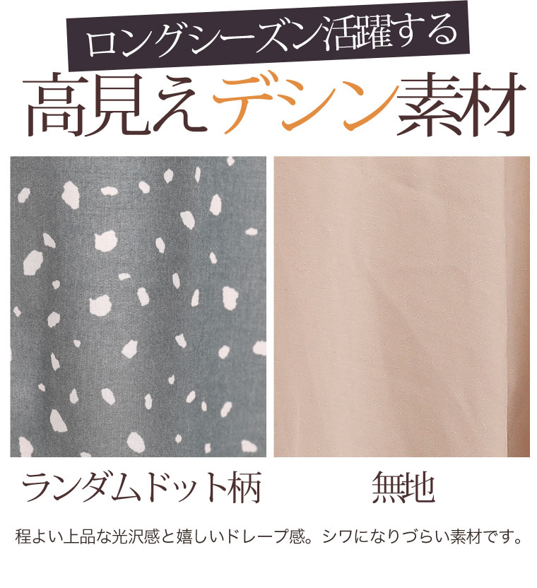 シンプルな無地とレトロでかわいいドットデザインで大人可愛くコーディネート