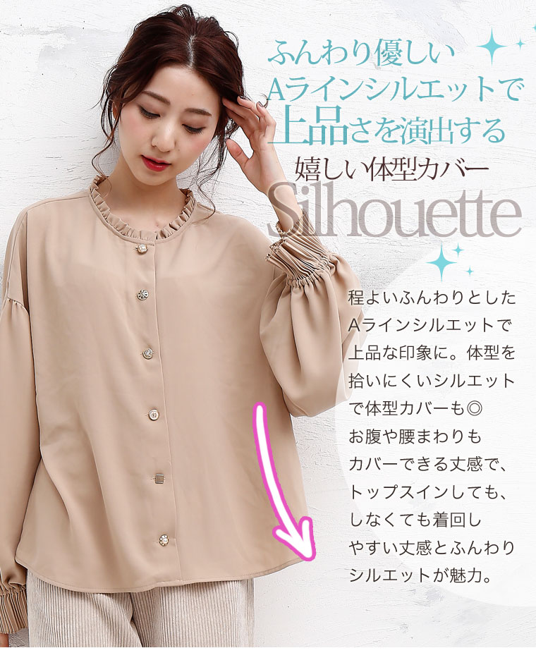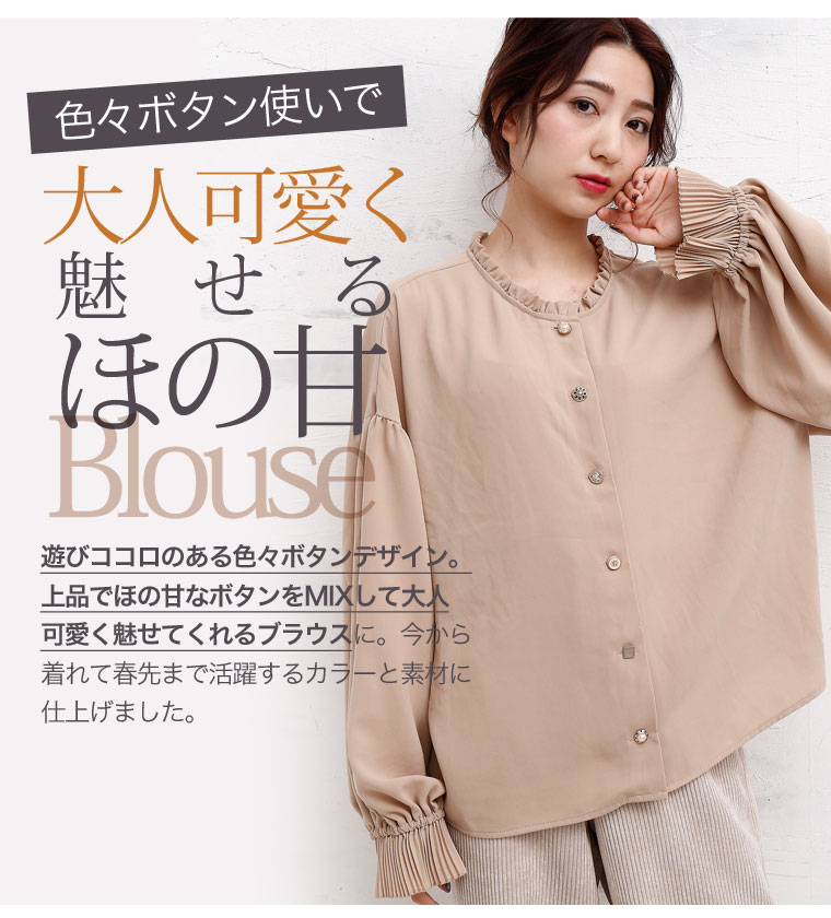 色々ボタンが大人かわいい!!ゆったりプチハイネックブラウス