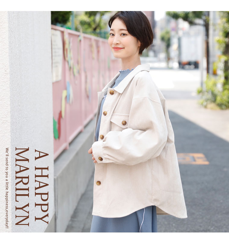 袖丈が少し長めでしたが、お尻も隠れる着丈でゆったりと着用できました。細めのコーデュロイで大人カジュアルな感じで着こなせますね。