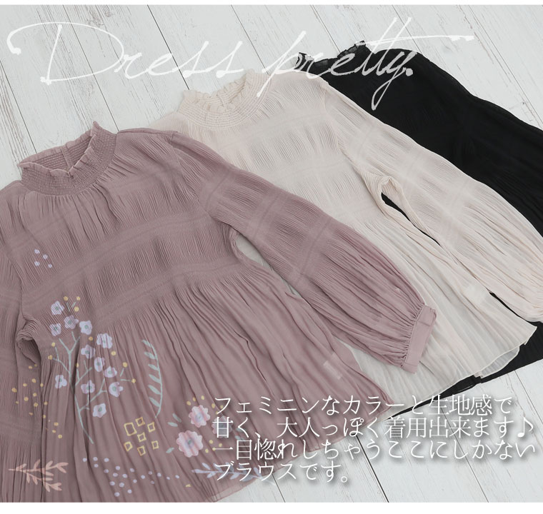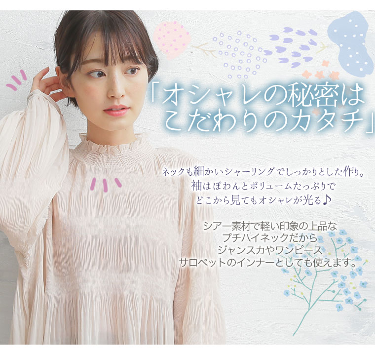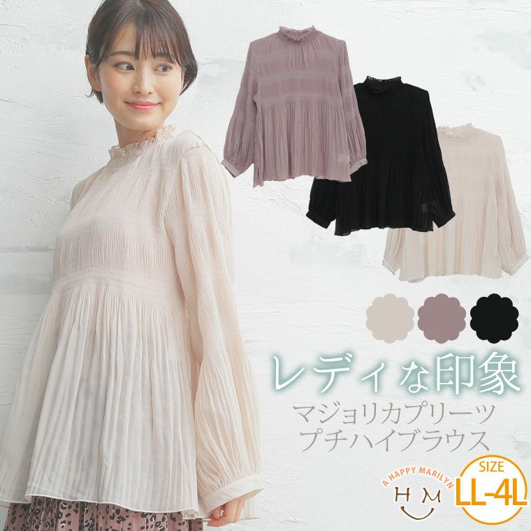 ふんわり可愛いマジョリカプリーツプチハイブラウス