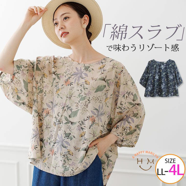 綿スラブが着心地良い花柄シャツ