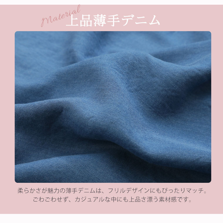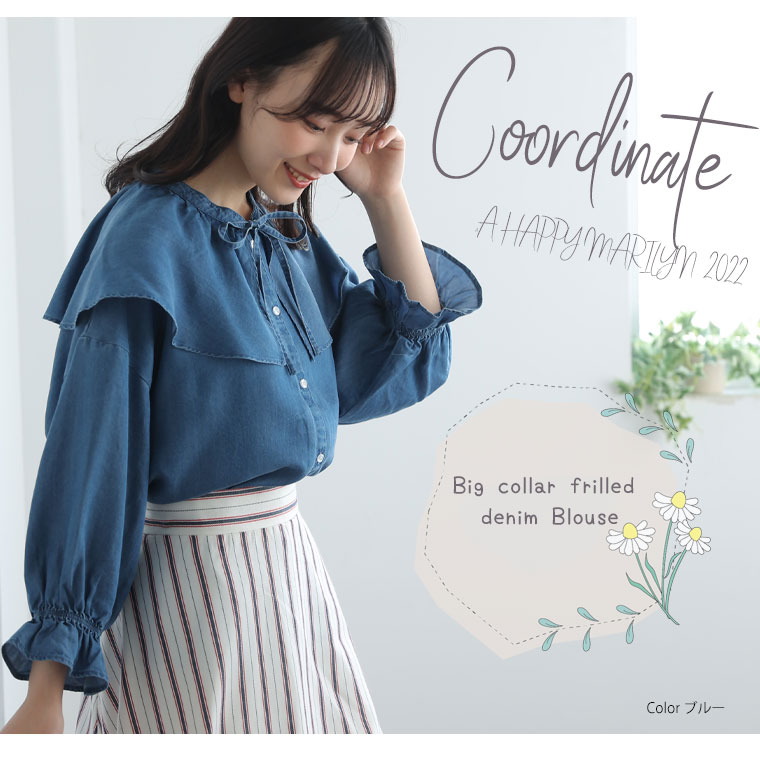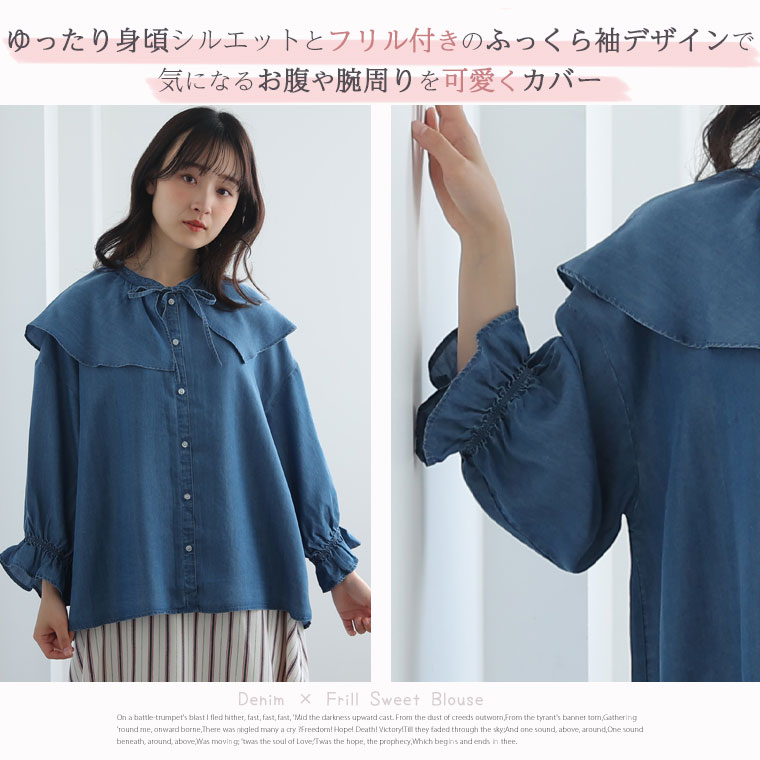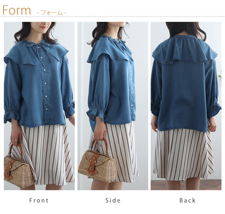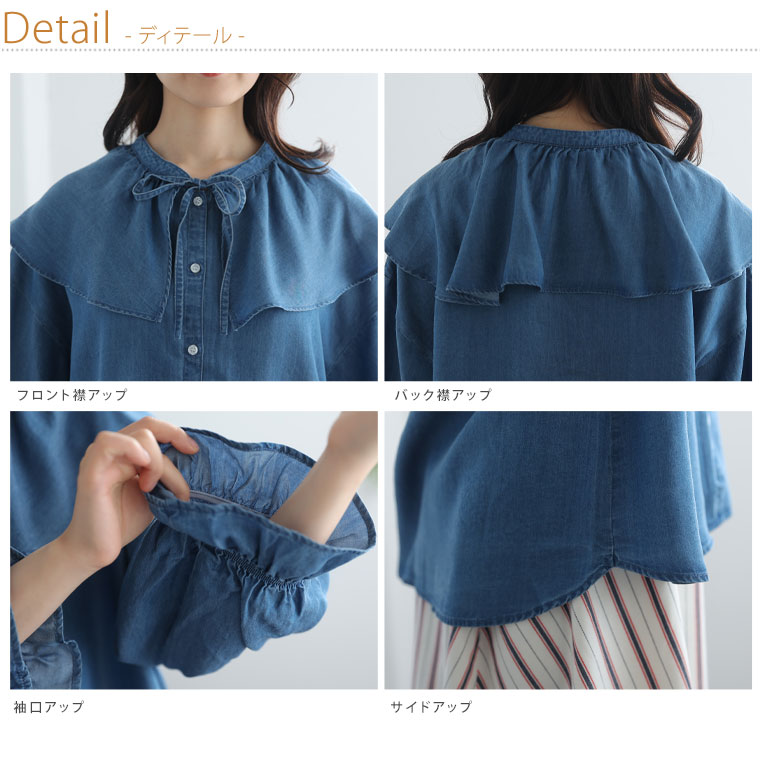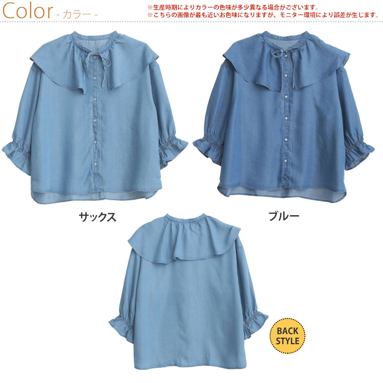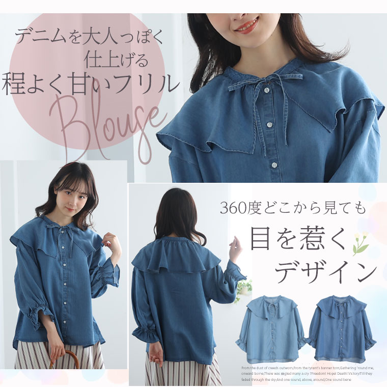 ビックなフリル襟×デニムの大人可愛いブラウス