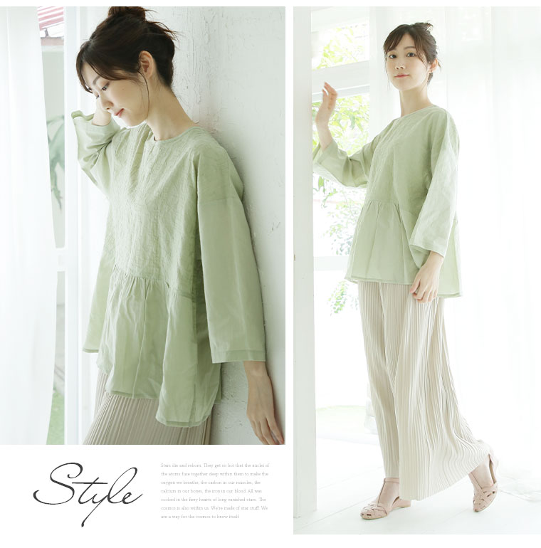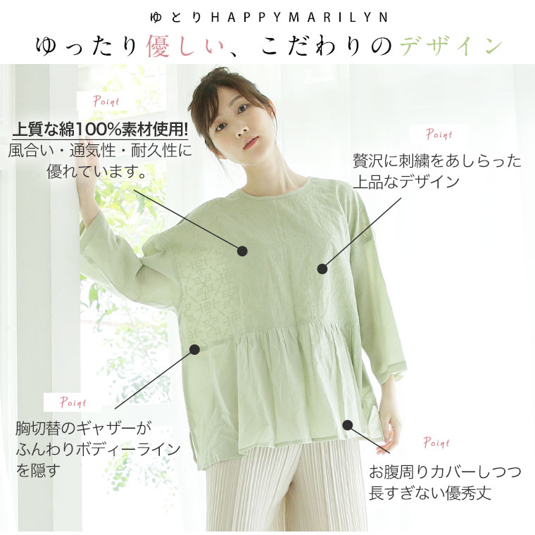 綿100% 大人のナチュラル体型カバーも叶える裾ギャザー