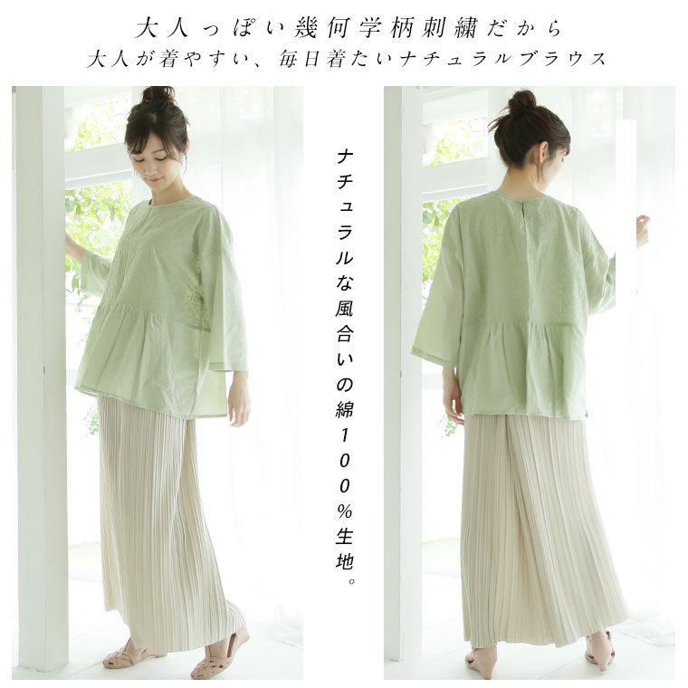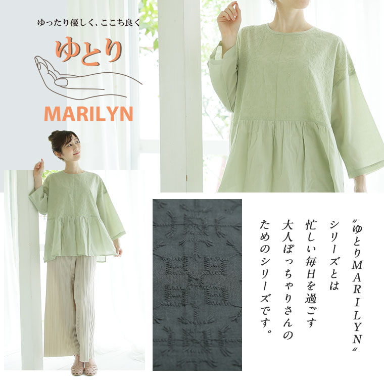 【ゆとりMARILYN】幾可柄刺繍ブラウス