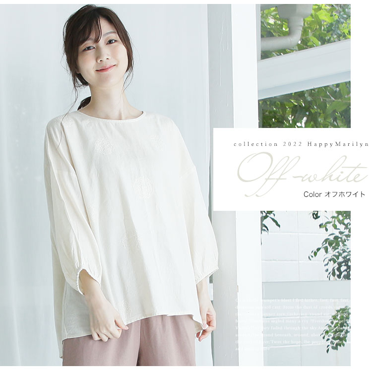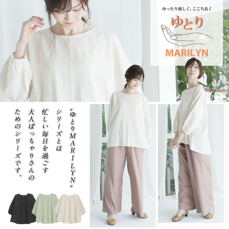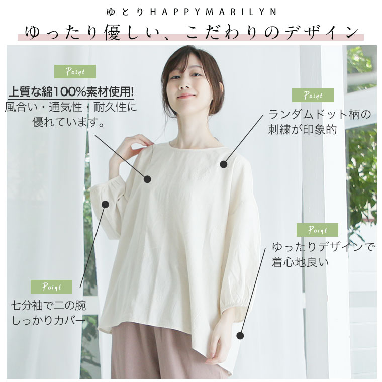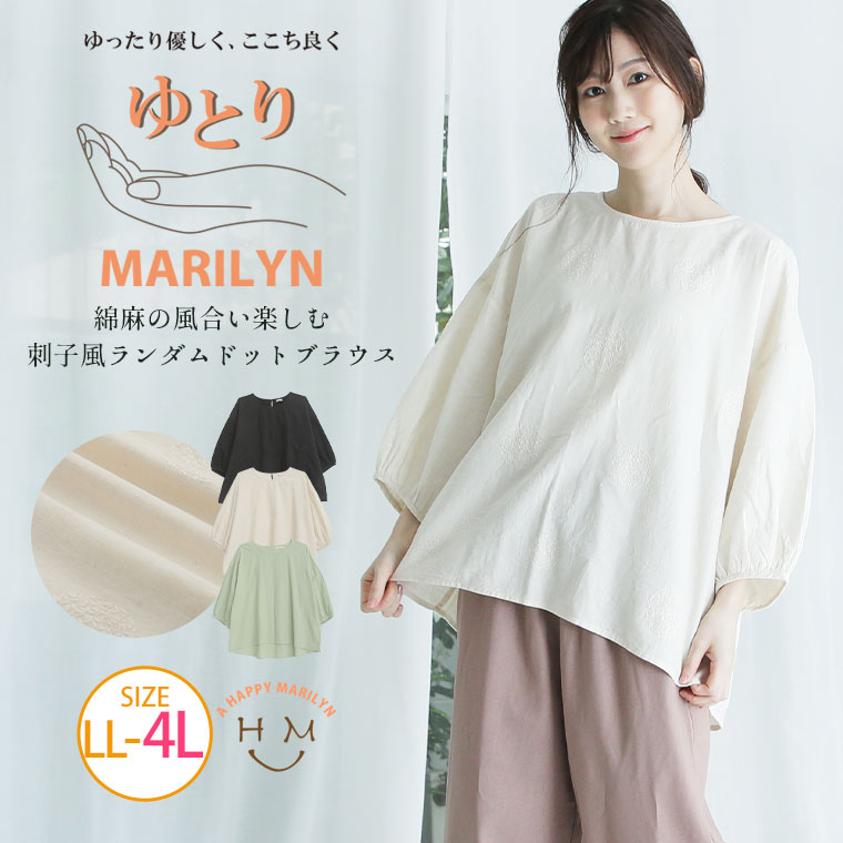 【ゆとりMARILYN】刺し子風ランダムドットブラウス
