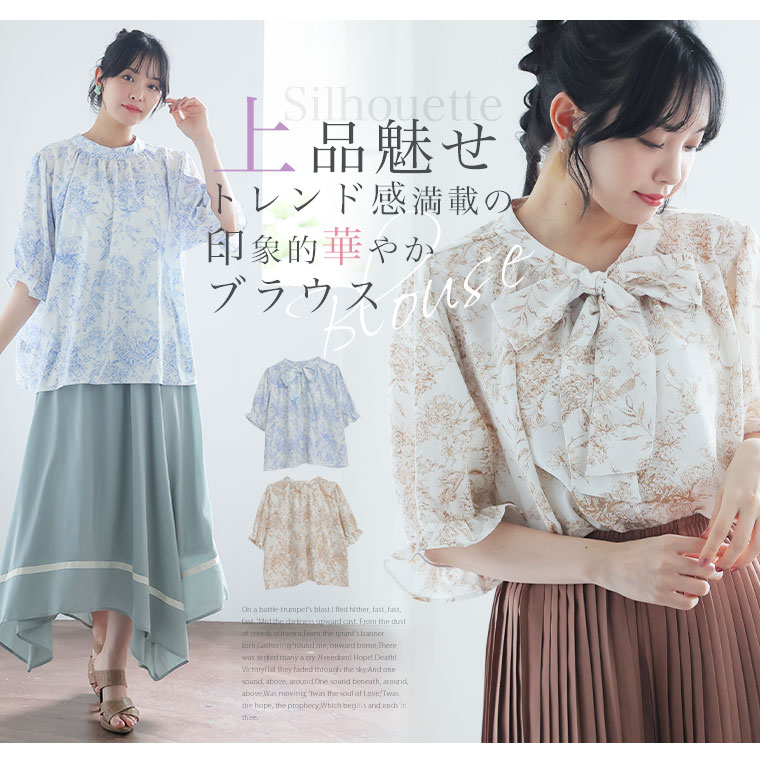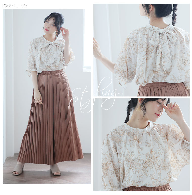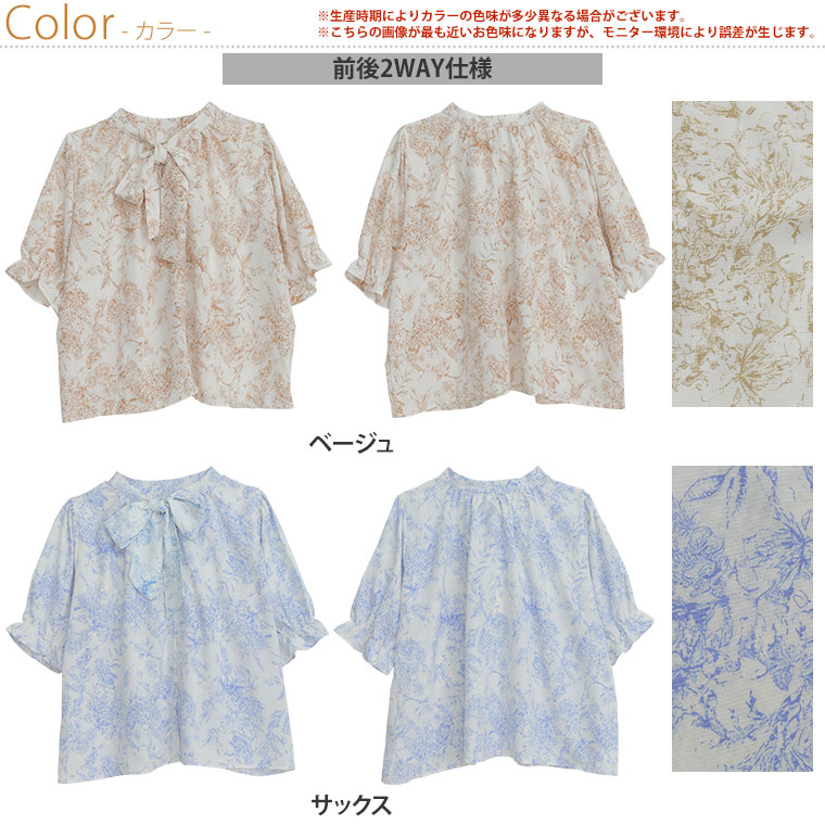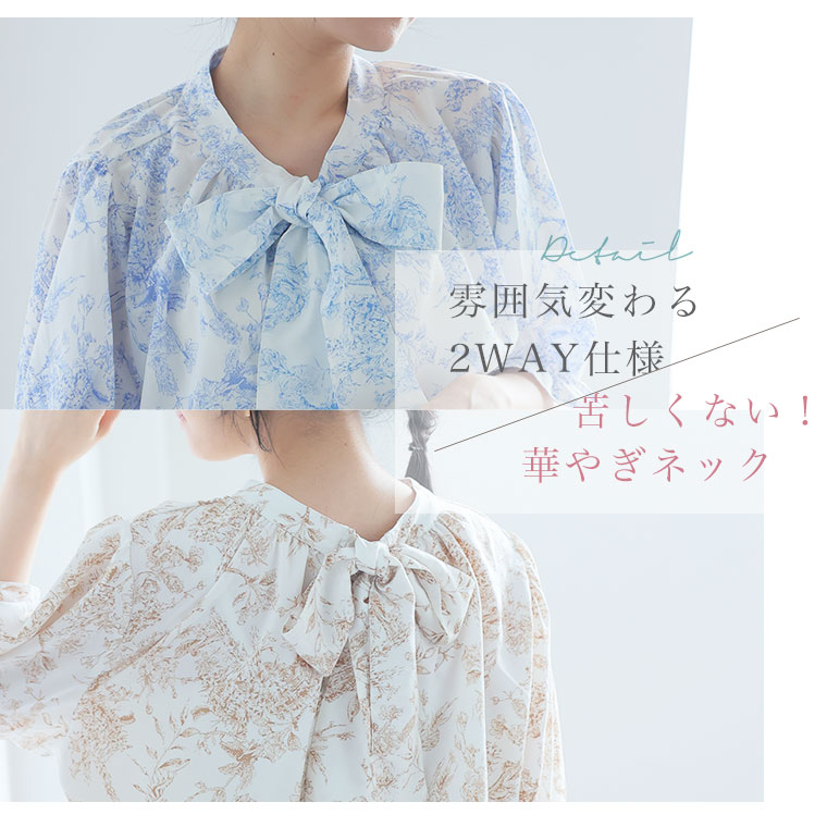 前後2WAY リボンタイが大人可愛いシフォンブラウス