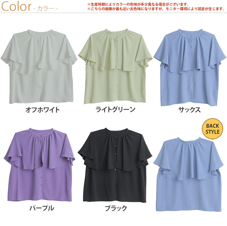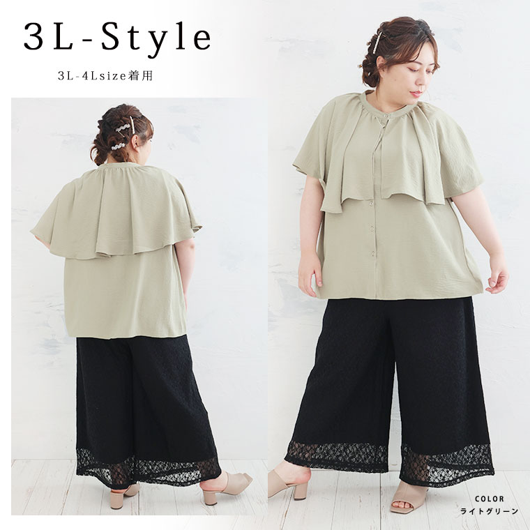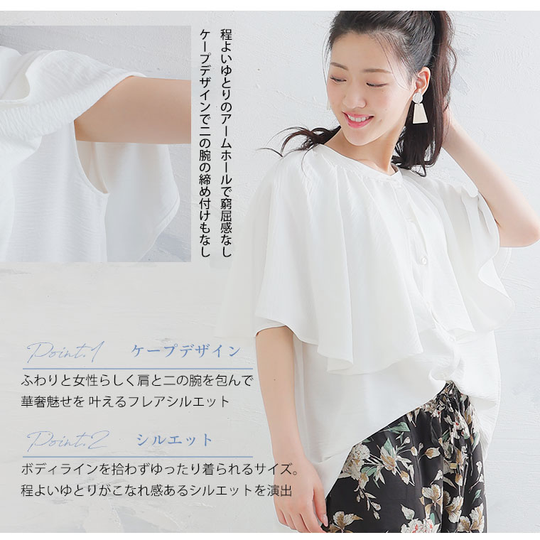 シャツ トップス LL 3L 4L 5L 6L 夏 夏物 夏服 夏用 ぽっちゃり ゆったり 二の腕カバー フレンチスリーブ 肩やせ 【着やせアイテム】上半身360度すっぽりカバーで即着痩せ! 暑がりサンの為の ケープブラウス
