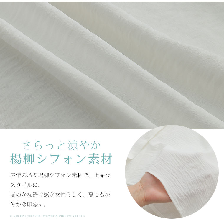 ■着用感:ちょうどいい、■着丈:ヒップ半分、■バスト:ちょうどいい、■腕回り:ちょうどいい、■袖口:ちょうどいい、■袖丈:肘上、■首回り:ぴったり、■ウエスト:-、■ヒップ:-、■太もも:- ●さらっとした素材感で涼やかに着られます。