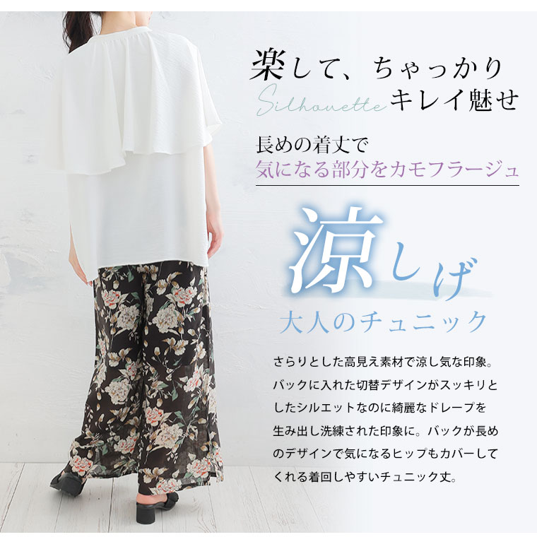 大きいサイズ 【着やせアイテム】上半身360度すっぽりカバーで即着痩せ! 暑がりサンの為の ケープブラウス