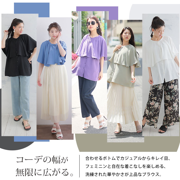 上半身360度すっぽりカバーで即着痩せ!ケープブラウス