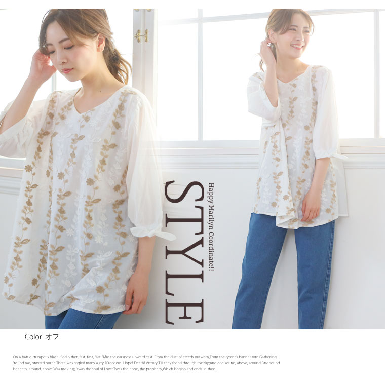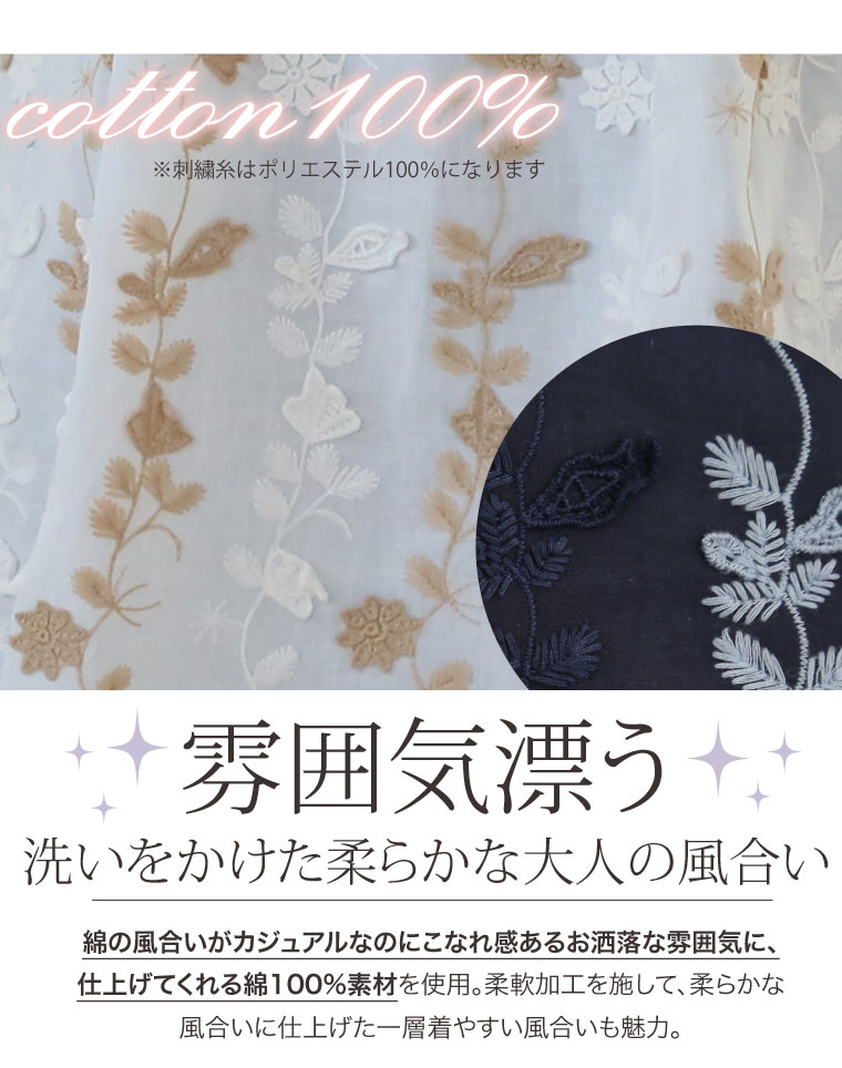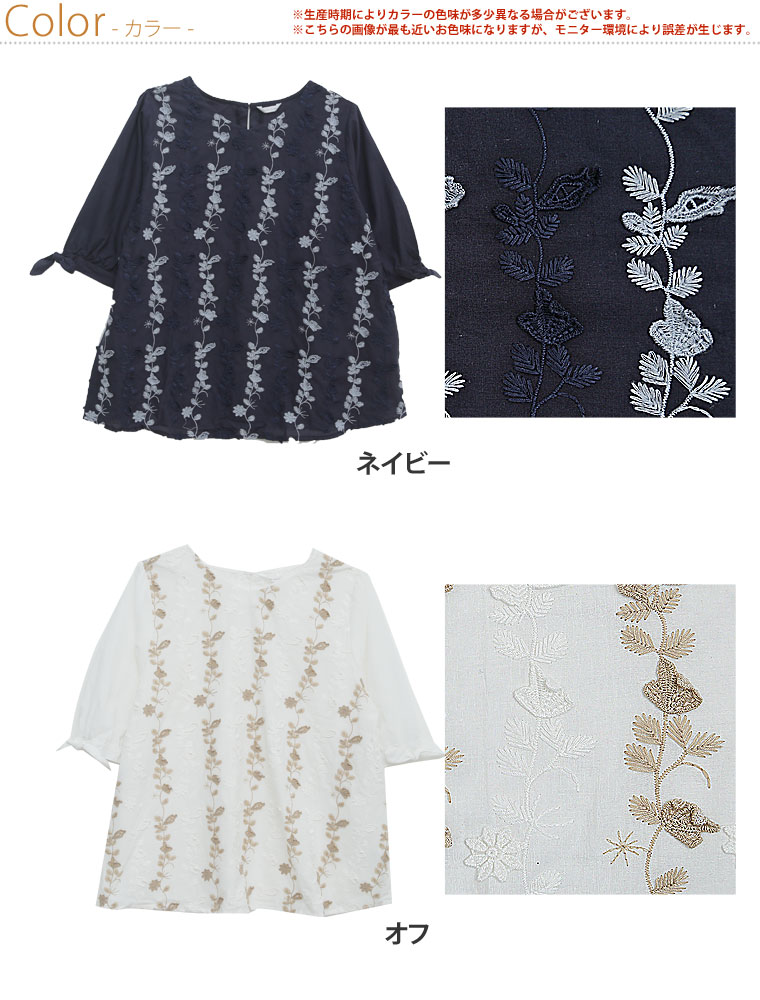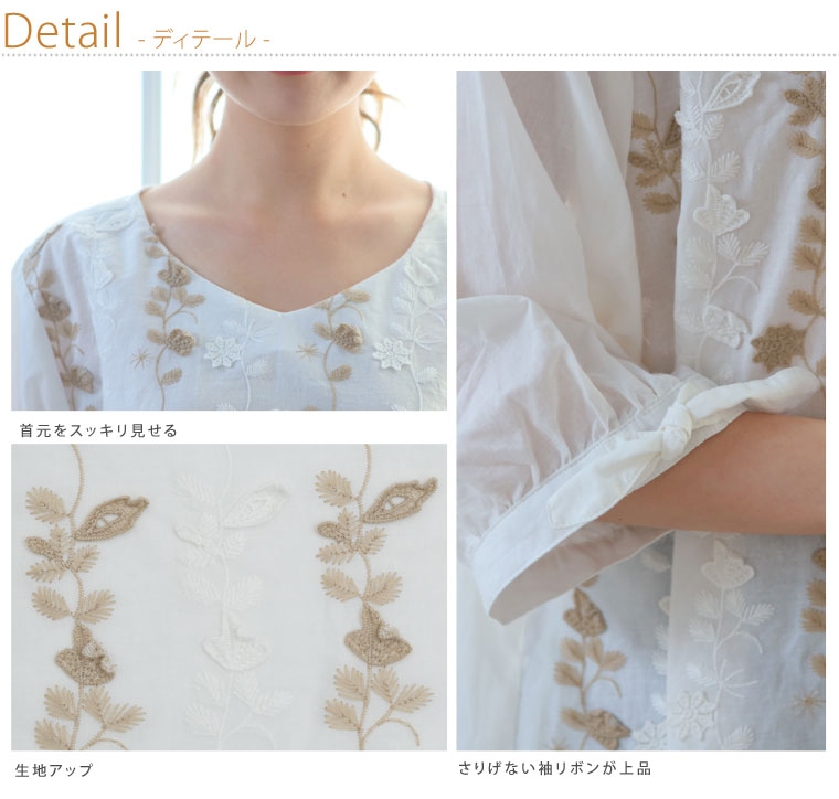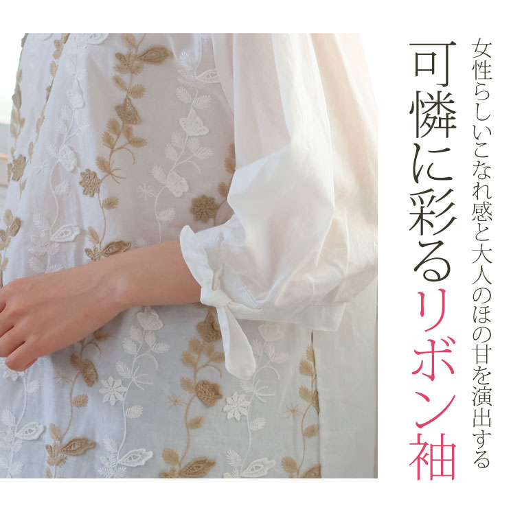 繊細な刺繍デザインと袖口リボンが上品でお洒落◎