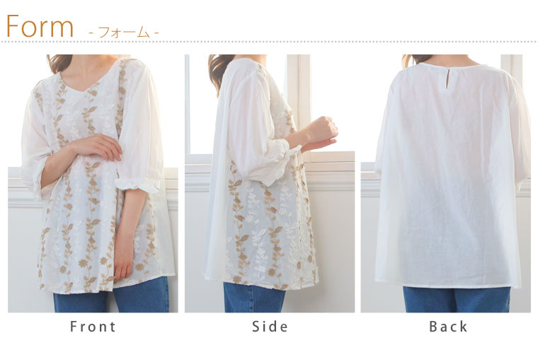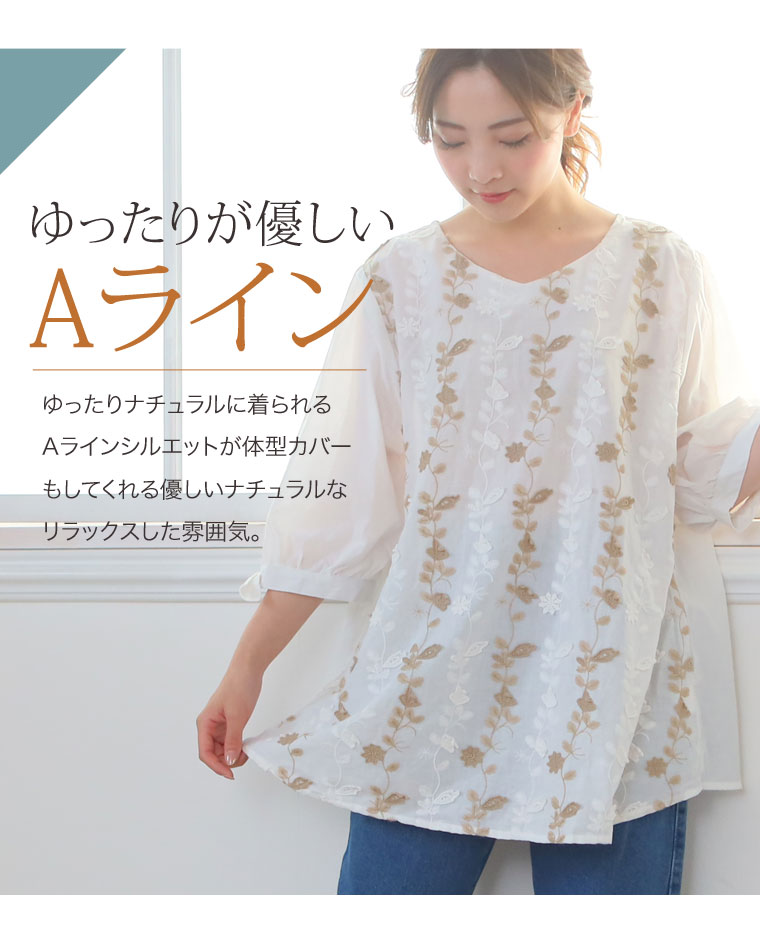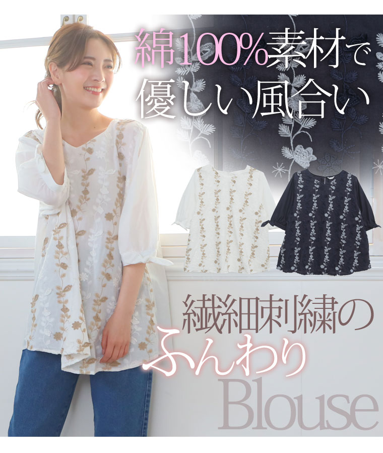 綿100%でさらっと抜群の着心地♪3D配色レース使いブラウス