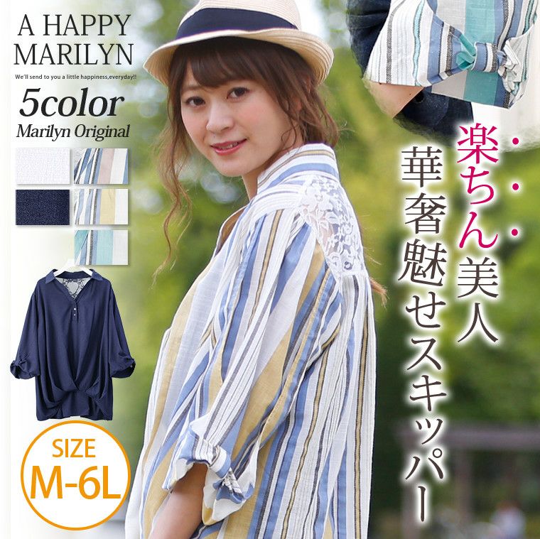 無地とストライプの涼し気なカラー展開。レースとリボンでほんのり甘めな大人のスキッパー