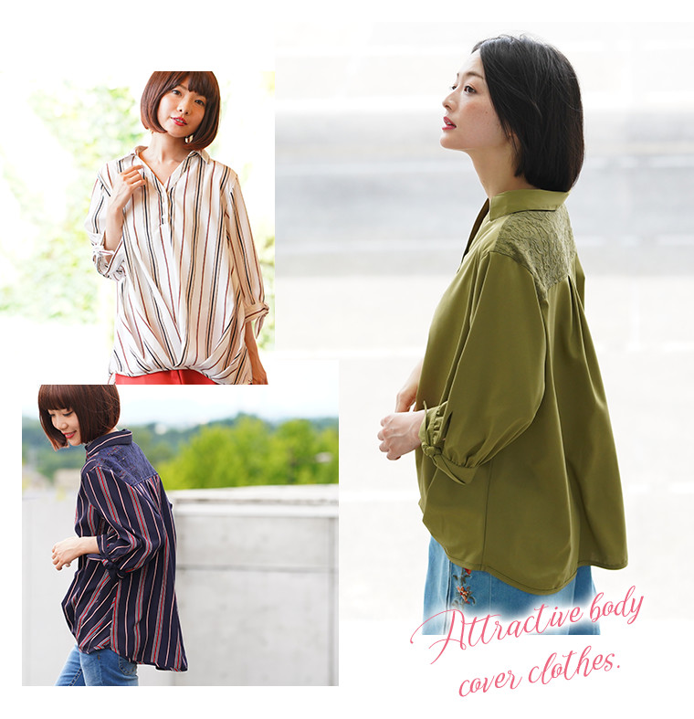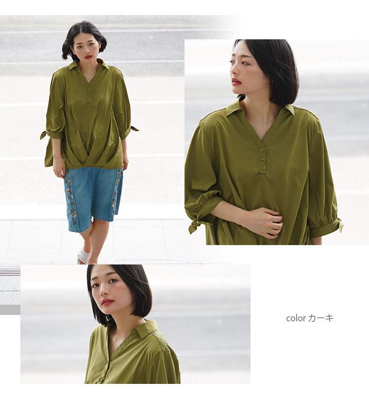 裾タックがふんわりとお腹周りをカバー♪楽ちん美人なスキッパーブラウス