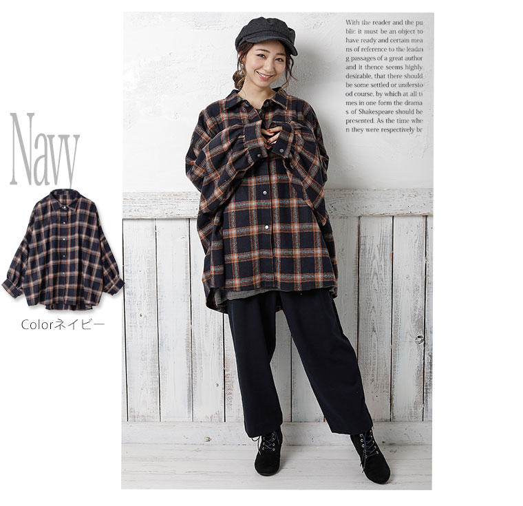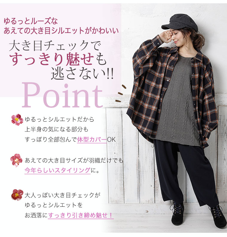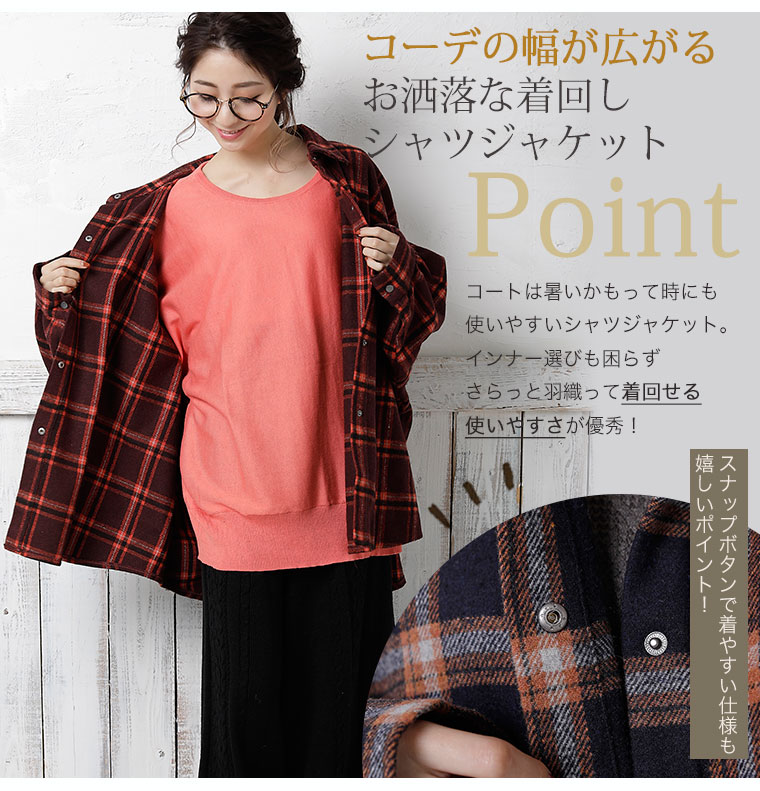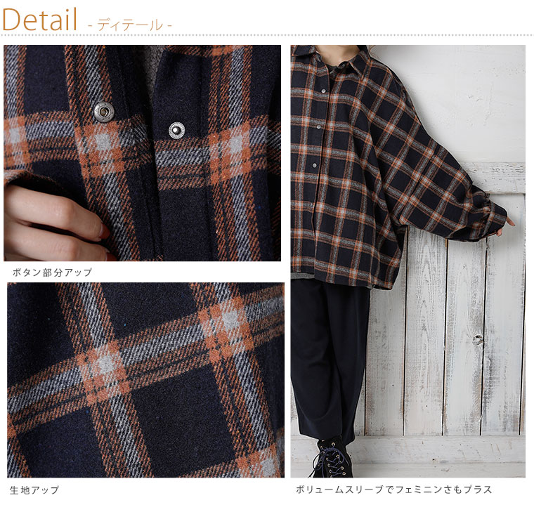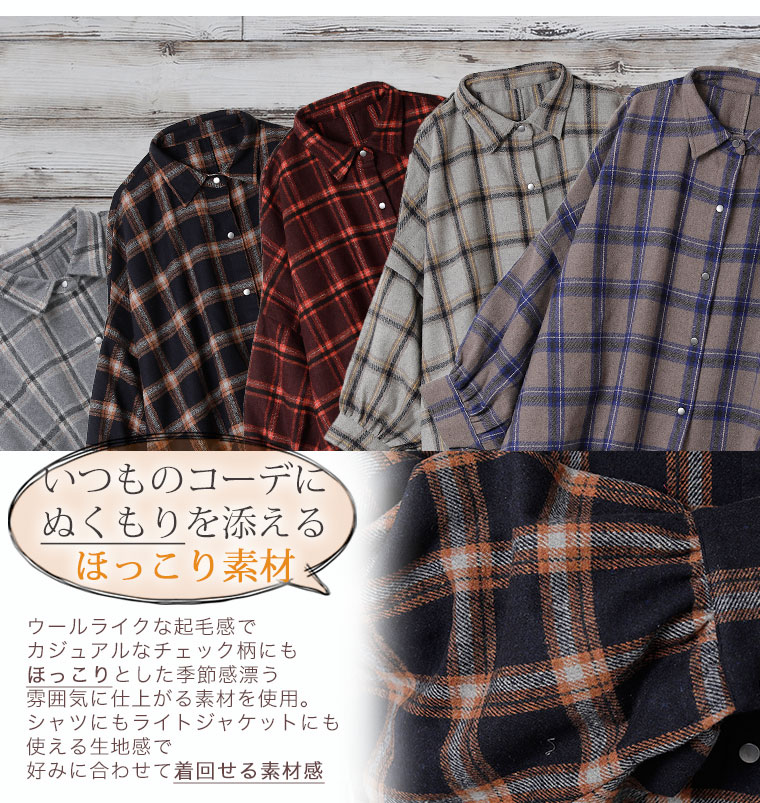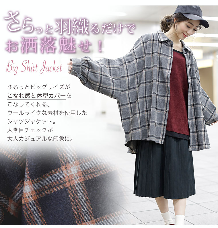 ゆったりビッグシルエットで大人可愛い。ウールライクチェック長袖シャツジャケット