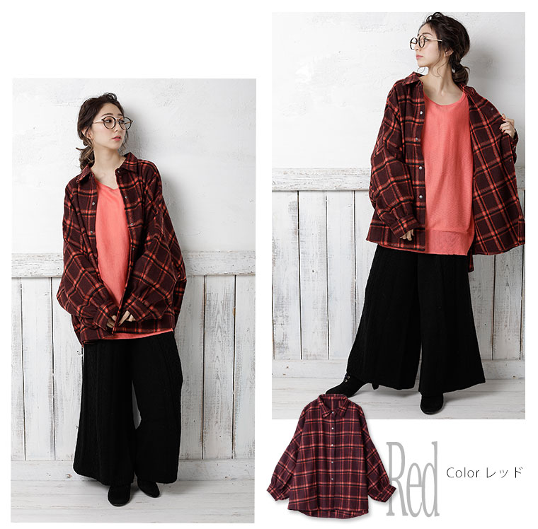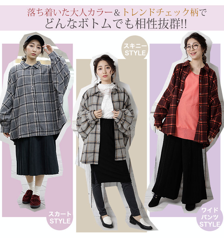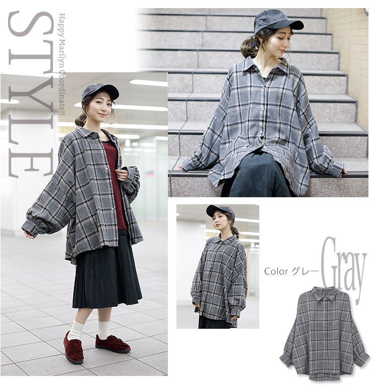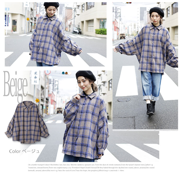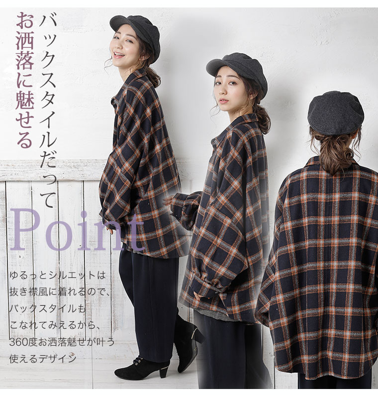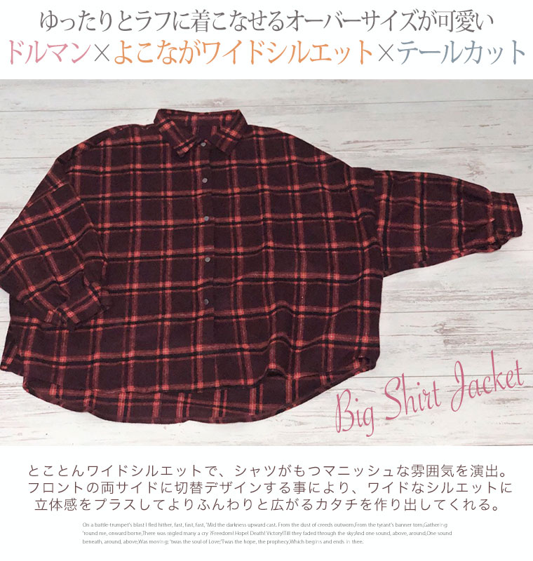 ゆったりビッグシルエットで大人可愛い。ウールライクチェック長袖シャツジャケット