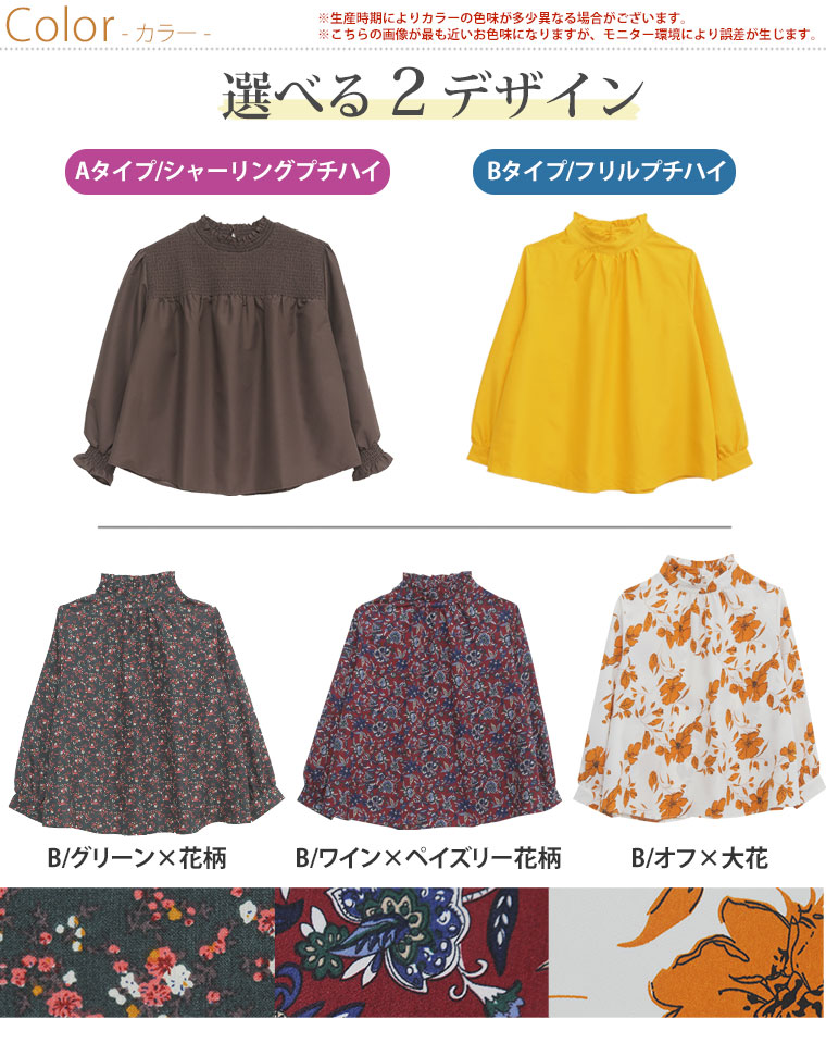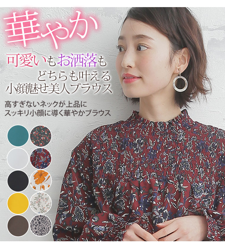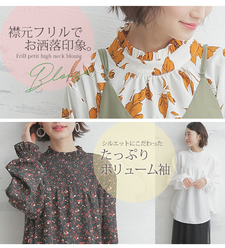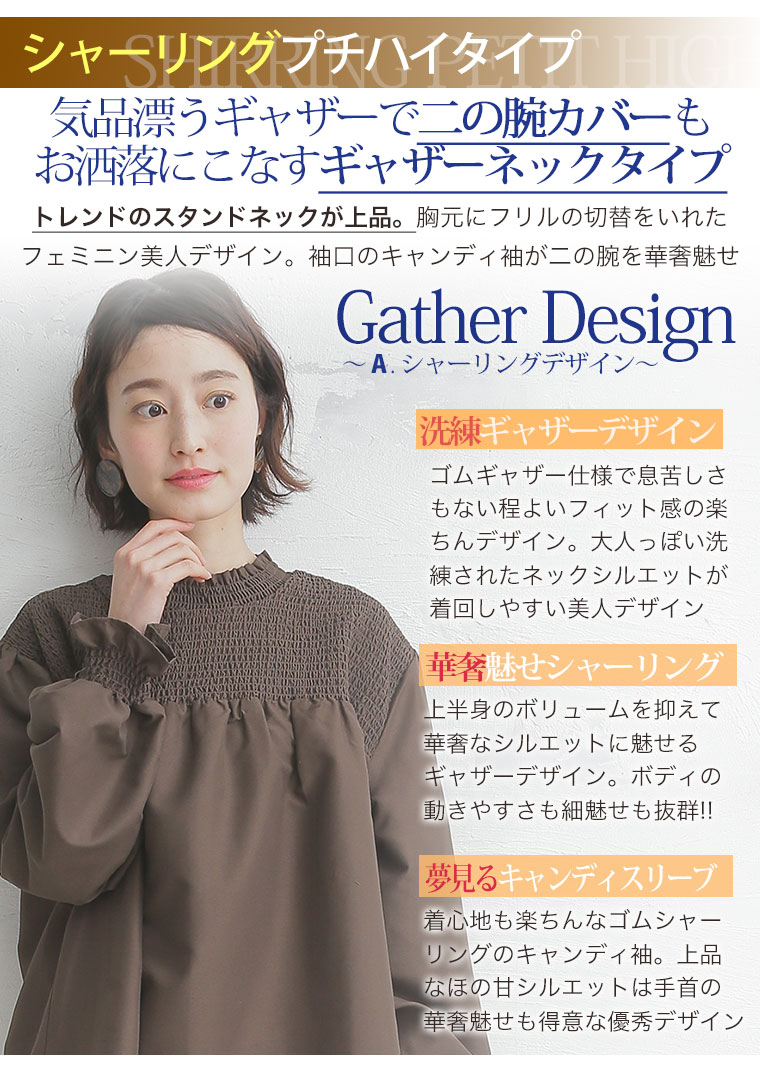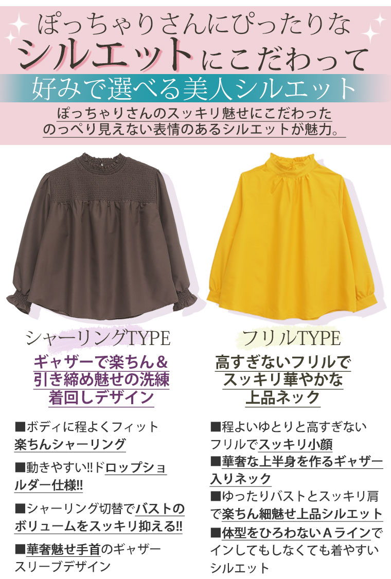 フリルとシャーリングの好みで選べる2デザイン!!洗練された印象と小顔魅せを叶えるお洒落なブラウス