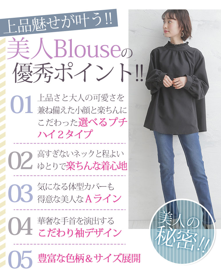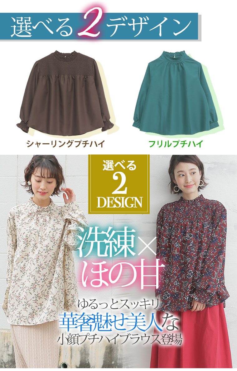 選べる2デザインスッキリ美人の着回し力抜群プチハイブラウス