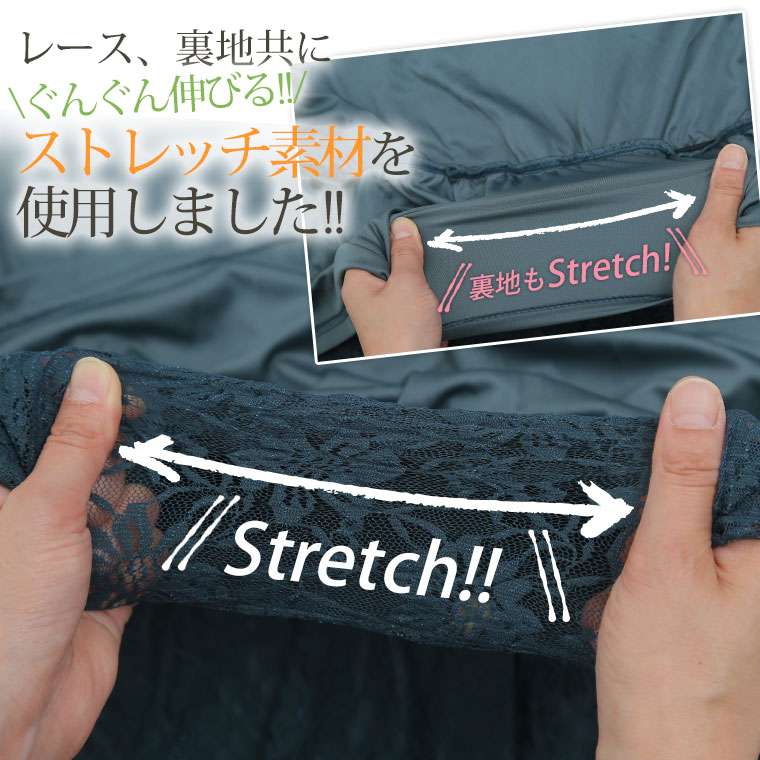ぐんぐんのびる!レースも裏地もストレッチ素材のレーストップス