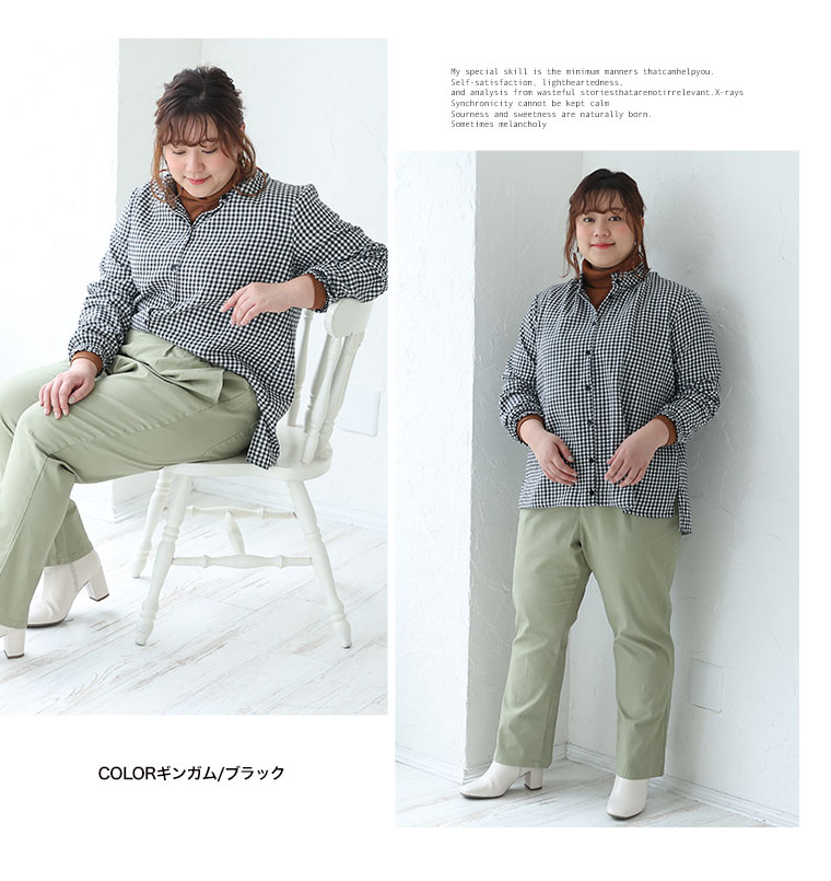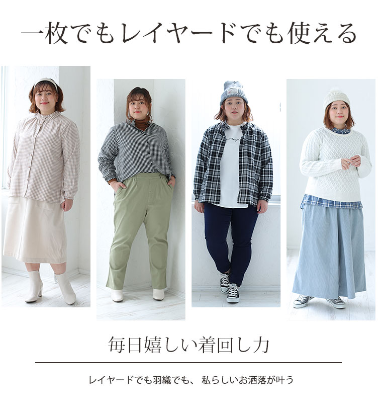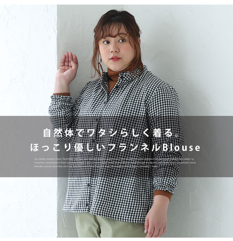 オリジナル シャツ トップス LL 3L 4L 5L 6L 春 春物 春服 ぽっちゃり ゆったり かわいい おしゃれ カジュアル ナチュラル プラスサイズ 暖か あったかい 暖かい 胸周り 春寒に負けない! 暖か フランネル フリルブラウス