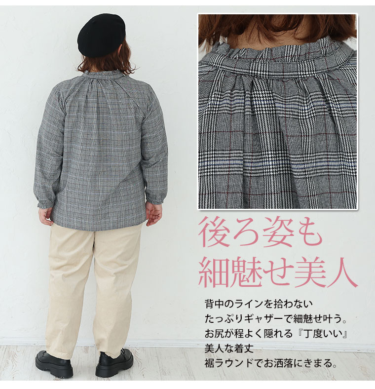 4. 大きいサイズ 春寒に負けない! 暖か フランネル フリルブラウス