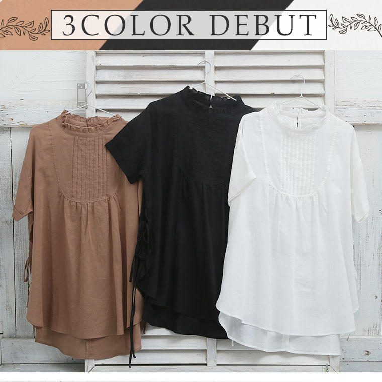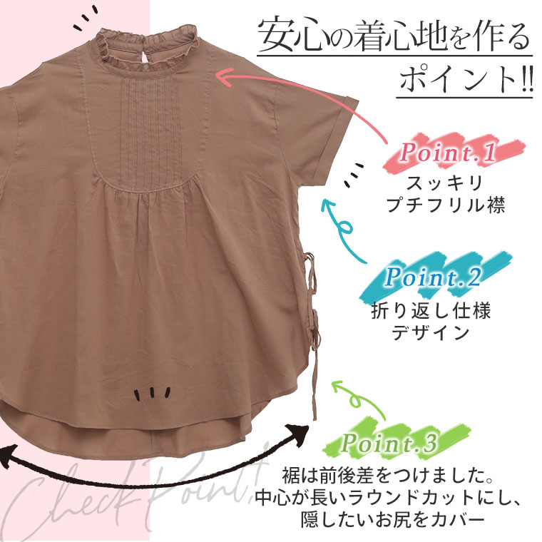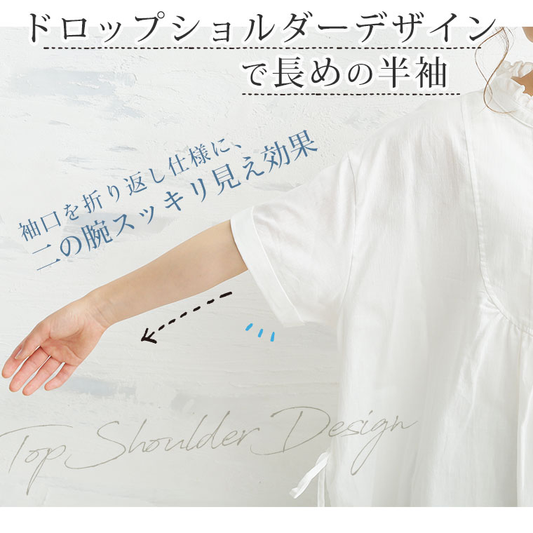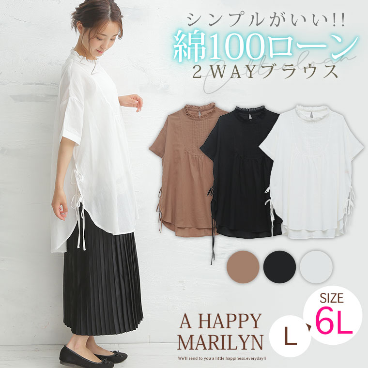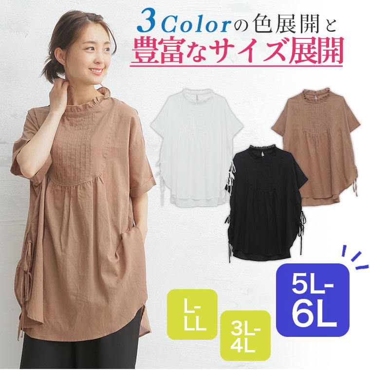 オリジナル トップス ブラウス LL 3L 4L 5L 6L 夏 夏物 夏服 夏用 ぽっちゃり ゆったり お腹 胸周り お尻 腰周り 半袖 綿100% 綿ローン ブザム 切り替え チュニック