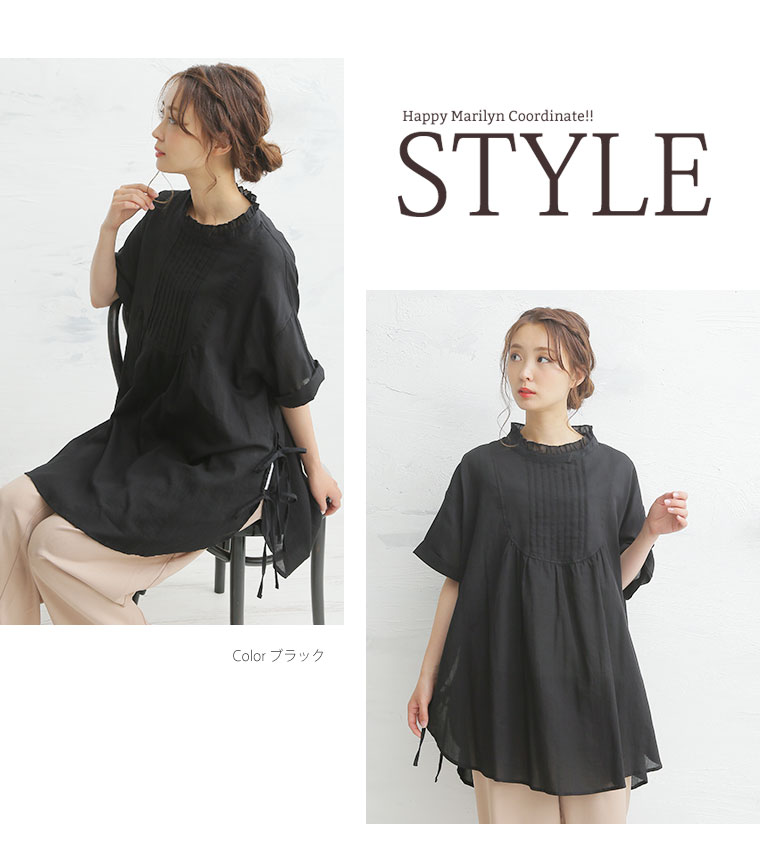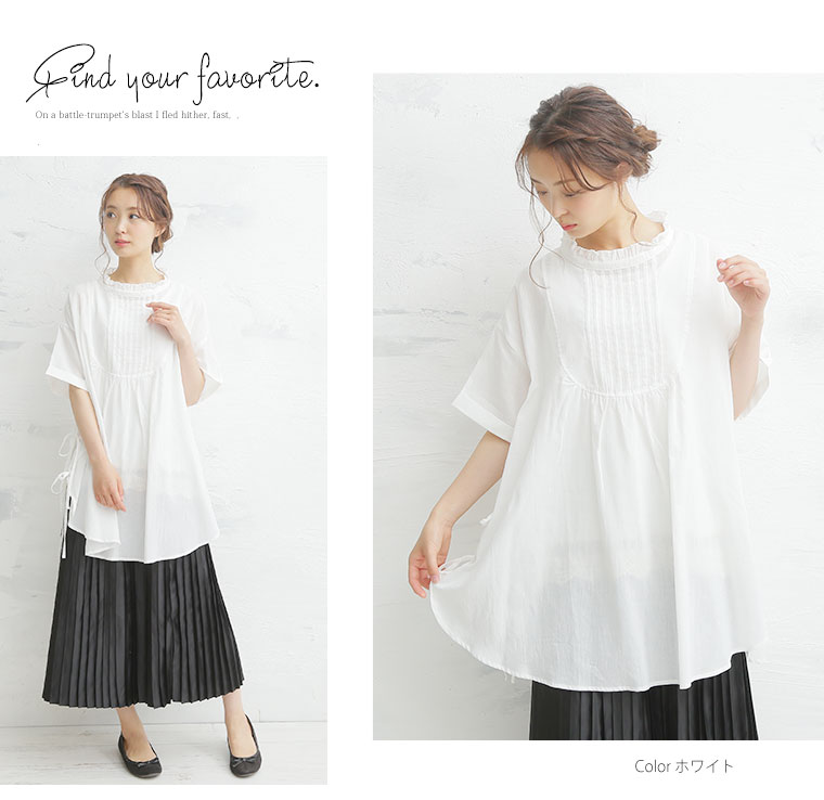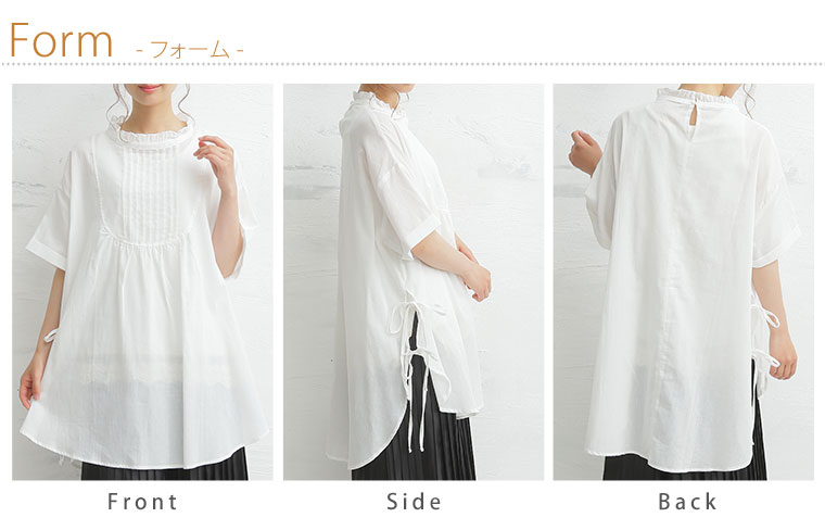 程よい透け感がありチュニック丈でお尻がすっぽりと隠れ、ゆったりと着用できました。サイドのスリットリボンがアクセントになりお洒落ですね。