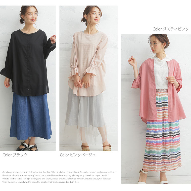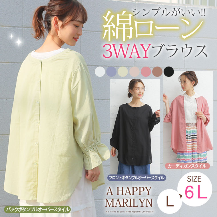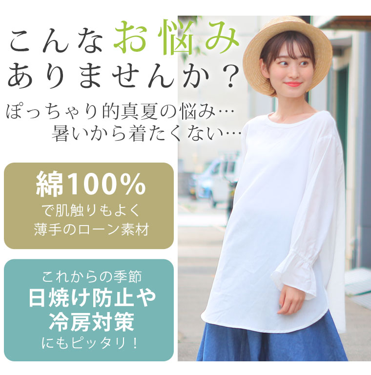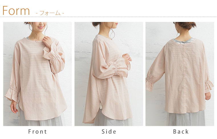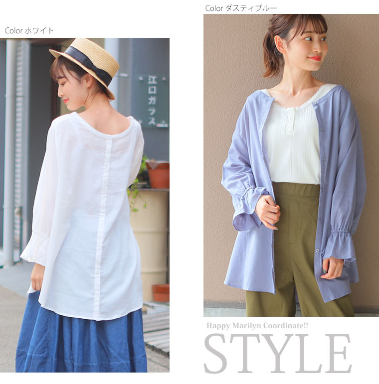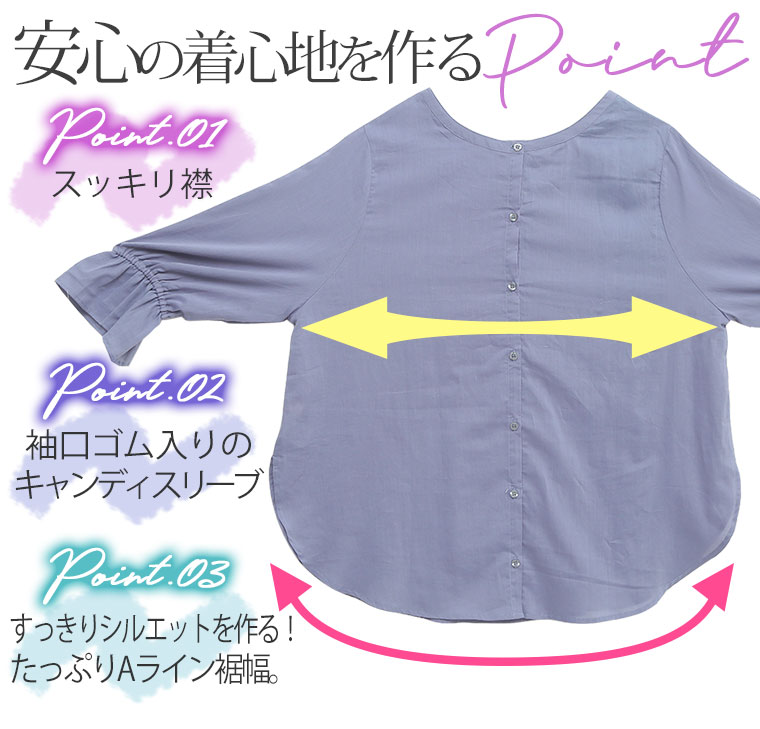 さらっとした柔らかな綿ローン素材の前後2WAYで着られるキャンディ袖シャツ