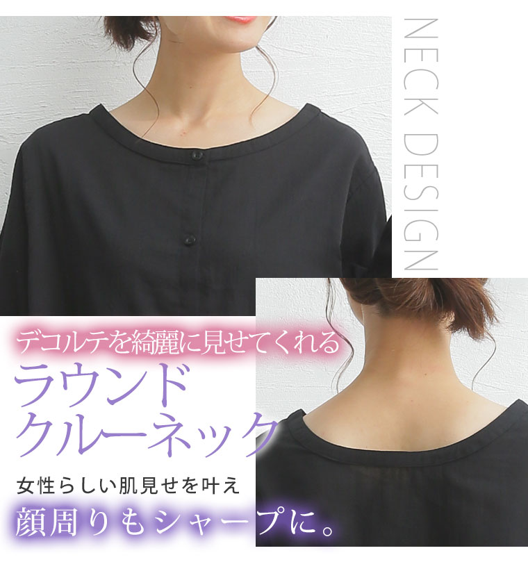 綿ローン前後2WAYラウンドクルーネックシャツ