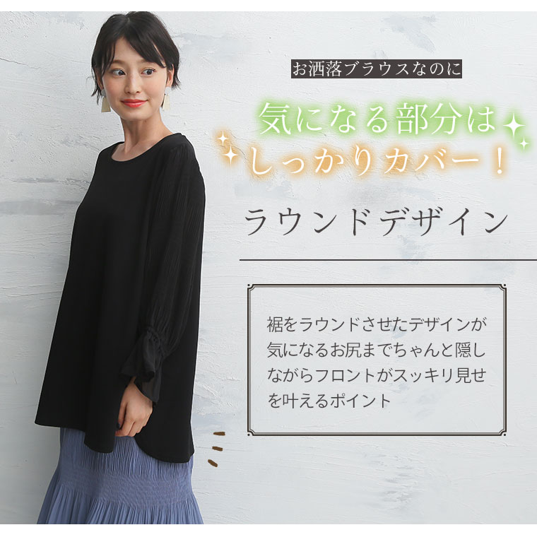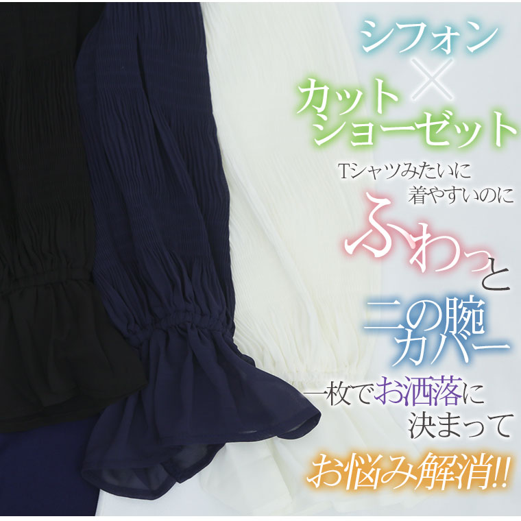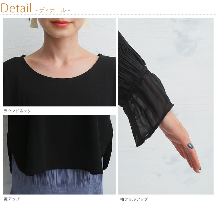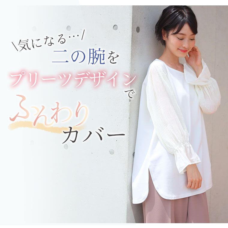 ふわっと軽やかなプリーツデザイン袖で二の腕カバー