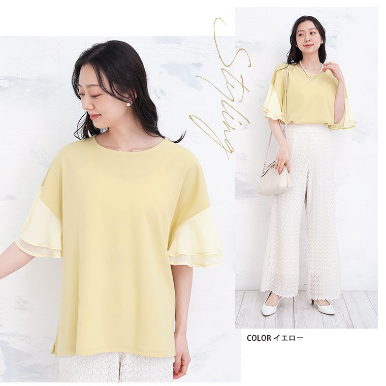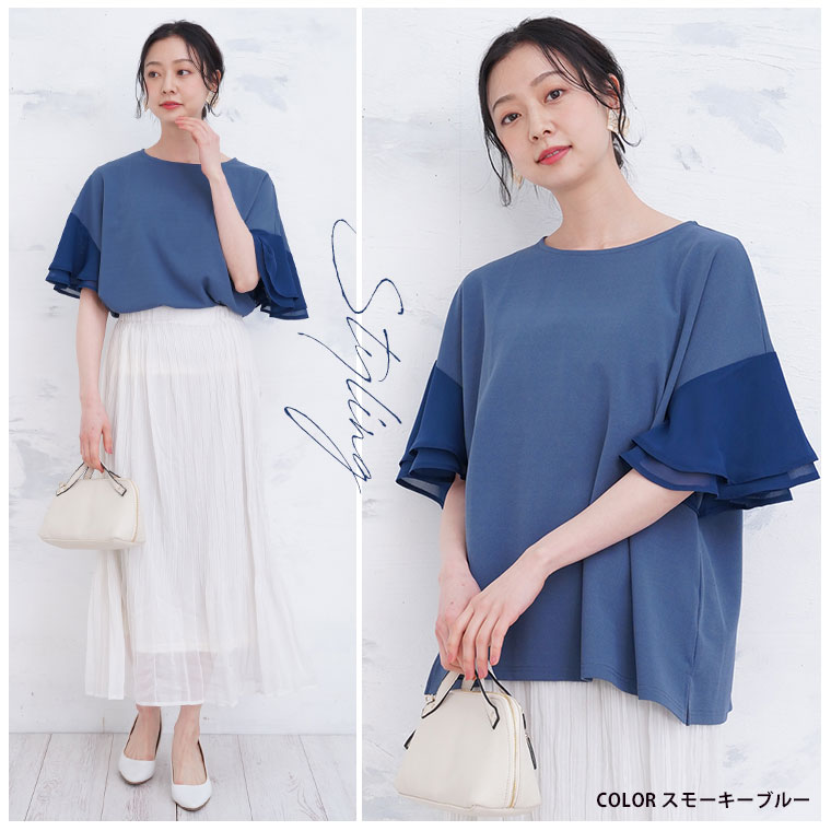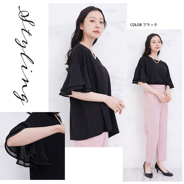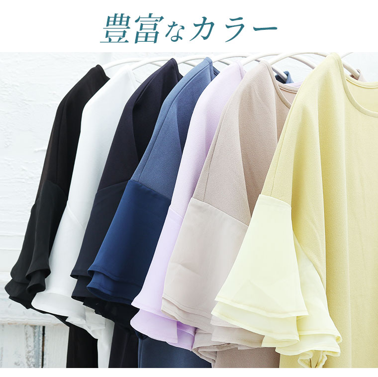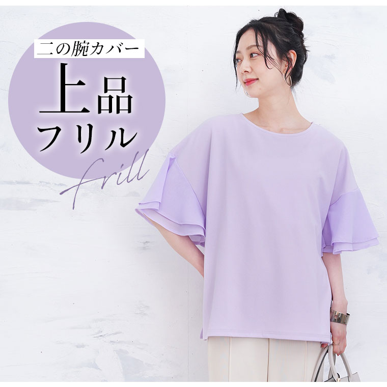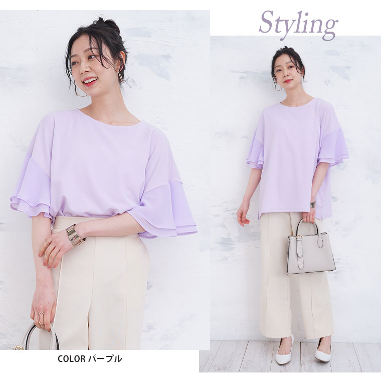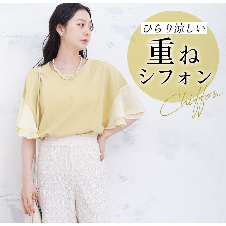 重ねシフォンのフリルスリーブがかわいい上品トップス
