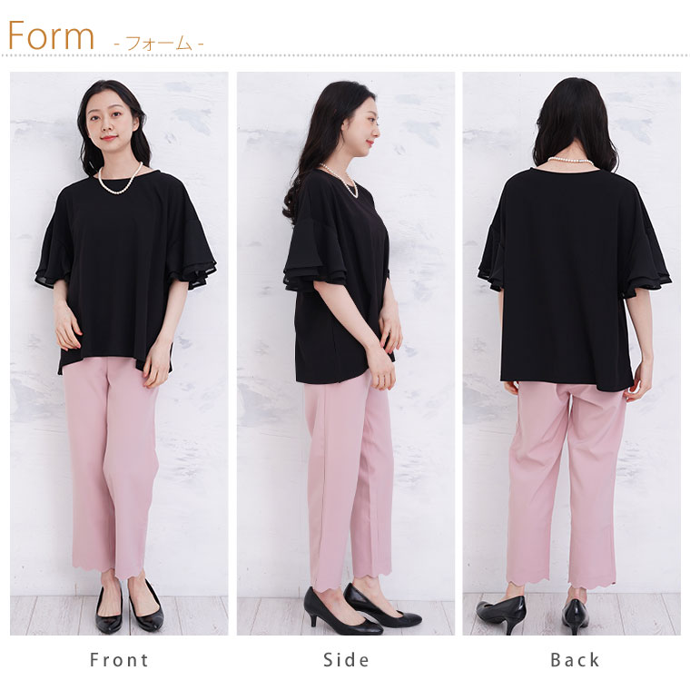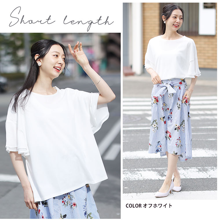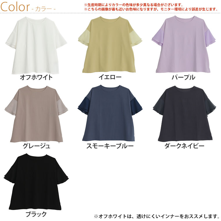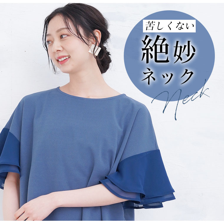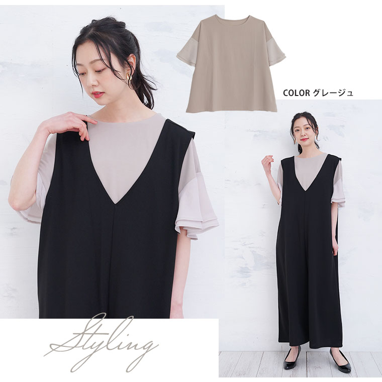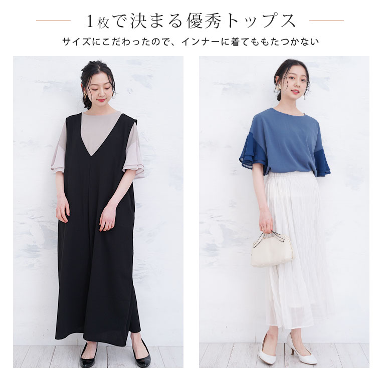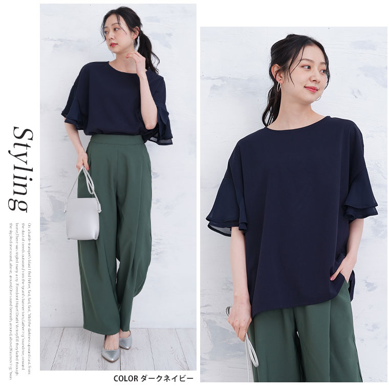 重ねシフォンのフリルスリーブがかわいい上品トップス