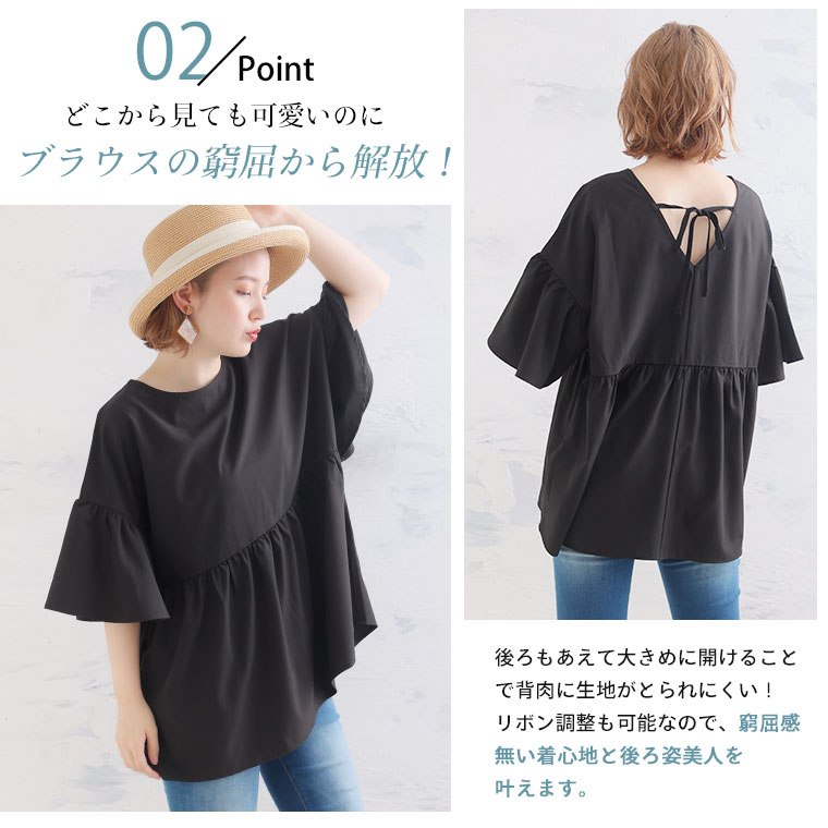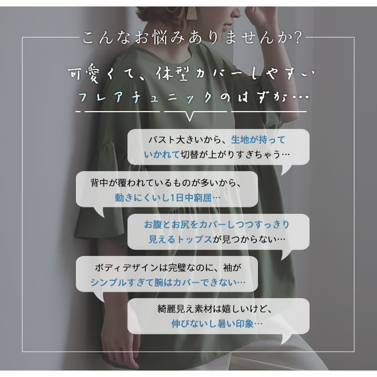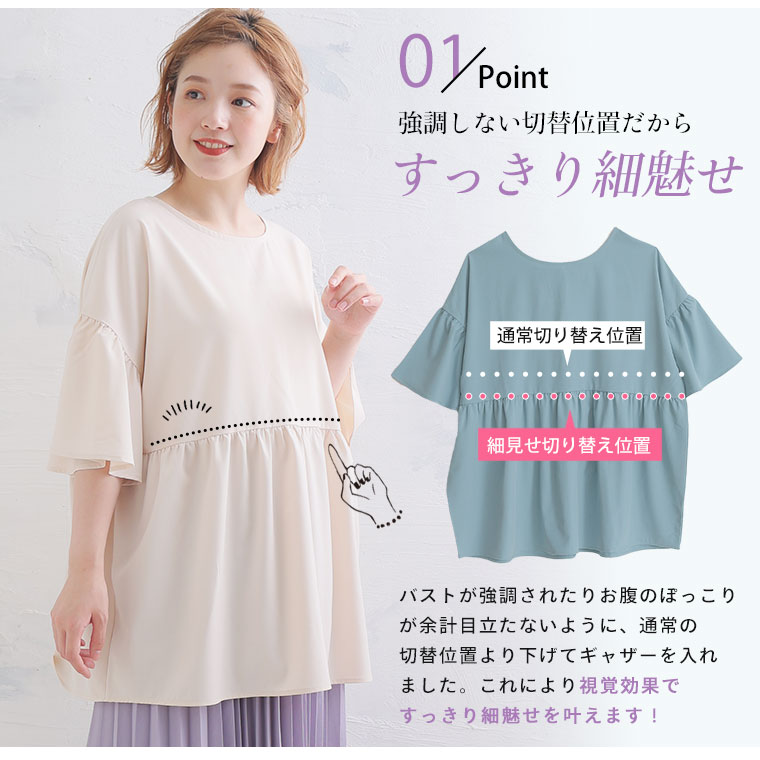 ぽっちゃりさんのお悩み解消!ギャザー切替チュニックブラウス