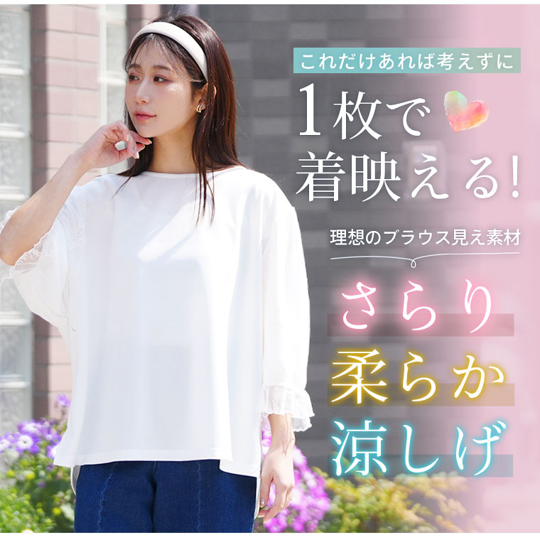 夏のスーツの下に着るのに買いました 袖が可愛くてスーツの下に着るのもったいないんですが、暑くてジャケット脱いだとき派手すぎない可愛らしさなので会社で浮くことがないので良かったです