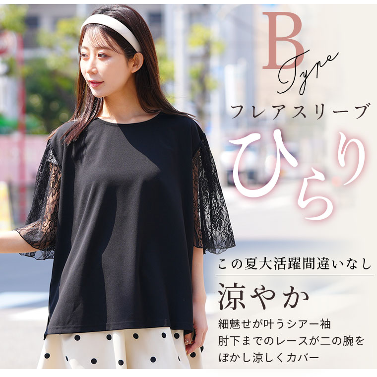 シャツ トップス LL 3L 4L 5L 6L 7L 8L 五分袖 夏 夏物 夏服 夏用 ぽっちゃり ゆったり プラスサイズ かわいい 二の腕カバー uv 接触冷感 さらっと二の腕ラク映え フレア/キャンディスリーブ ブラウス