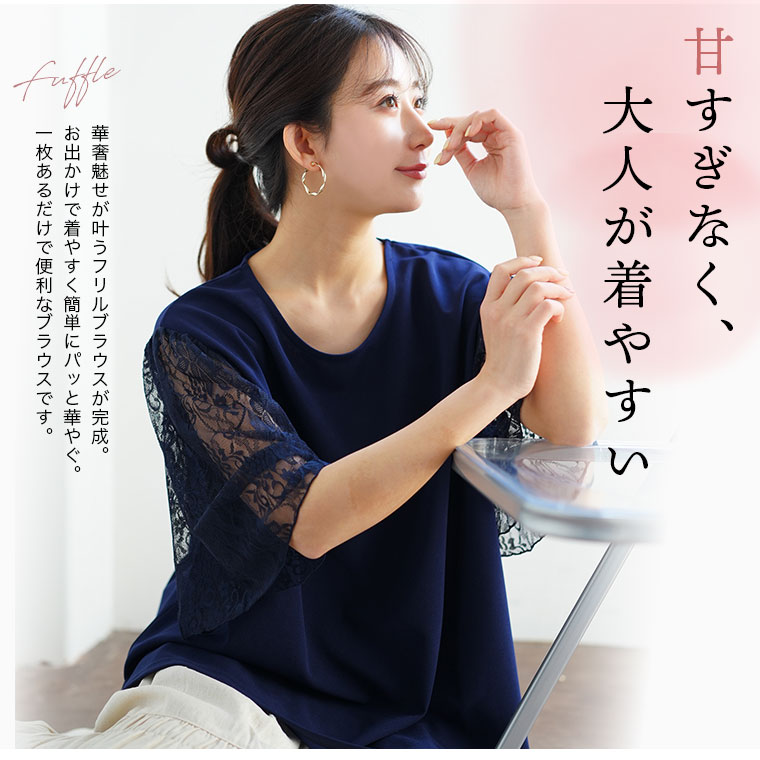 4. 大きいサイズ さらっと二の腕ラク映え フレア/キャンディスリーブ ブラウス
