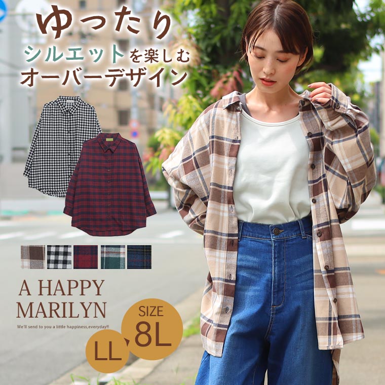 オリジナル ブラウス トップス LL 3L 4L 5L 6L 7L 8L 秋 秋物 秋服 冬 冬物 冬服 ぽっちゃり ゆったり かわいい おしゃれ カジュアル 【フランネルチェック】ビッグシルエットシャツ