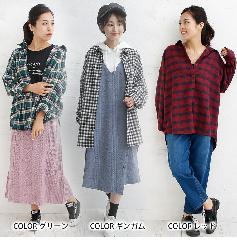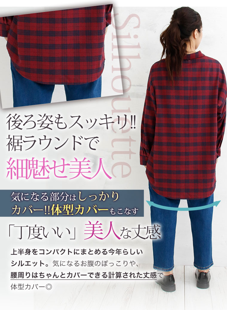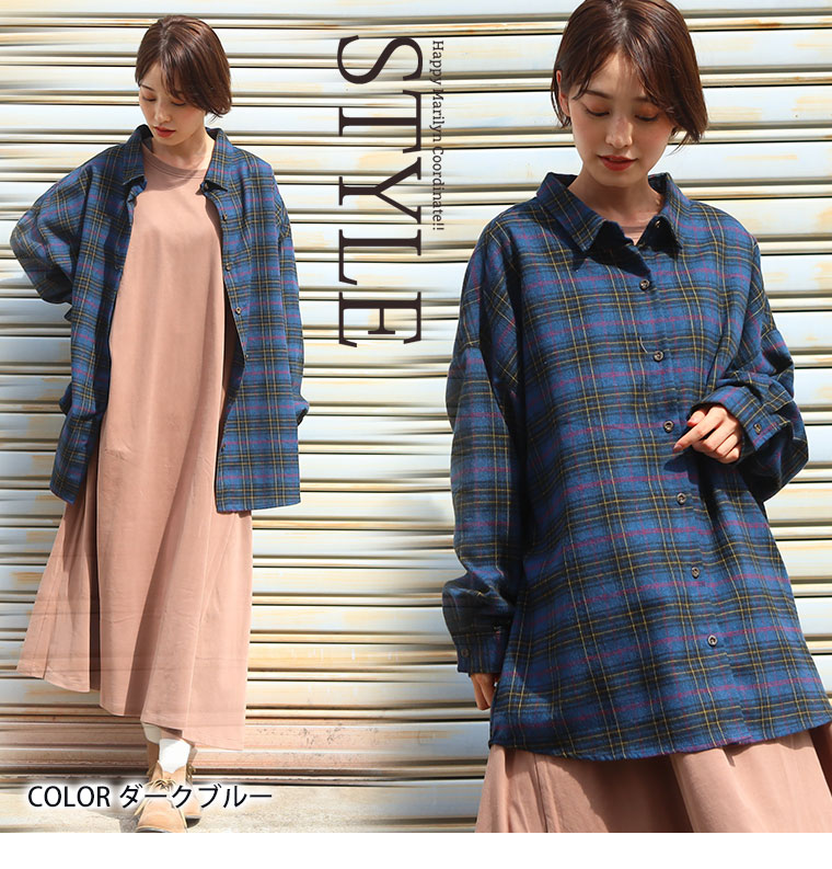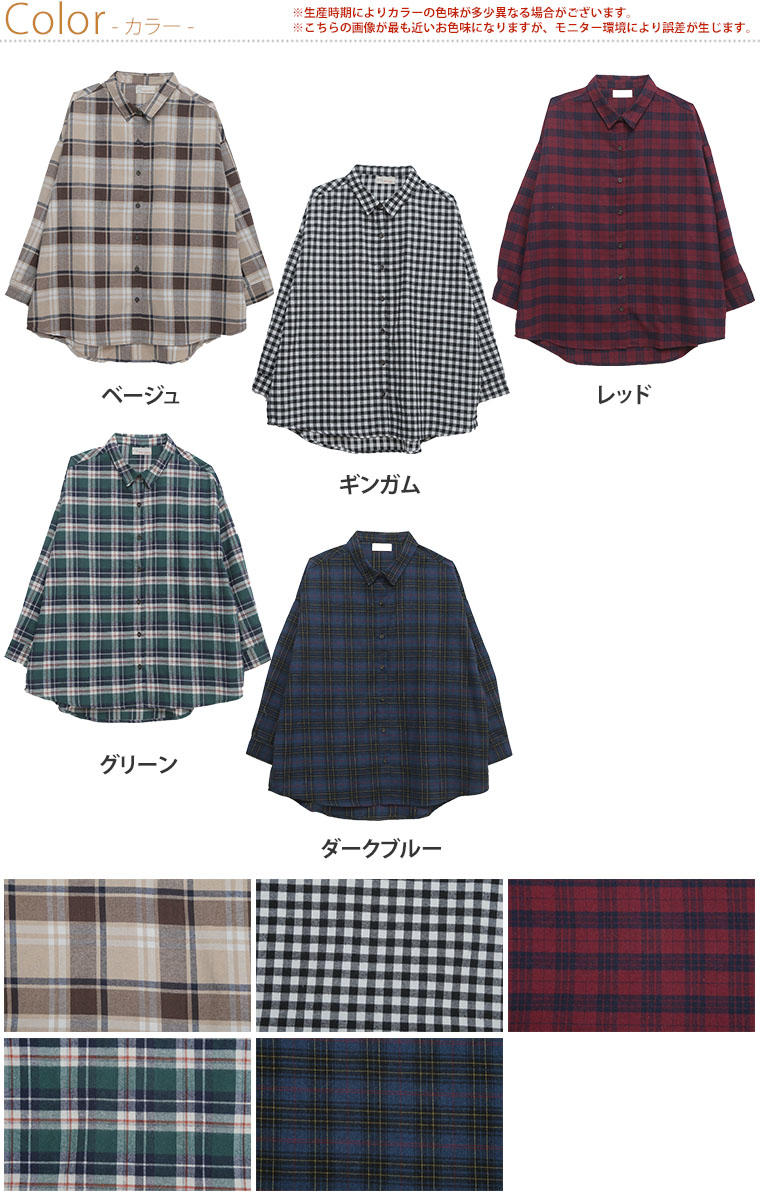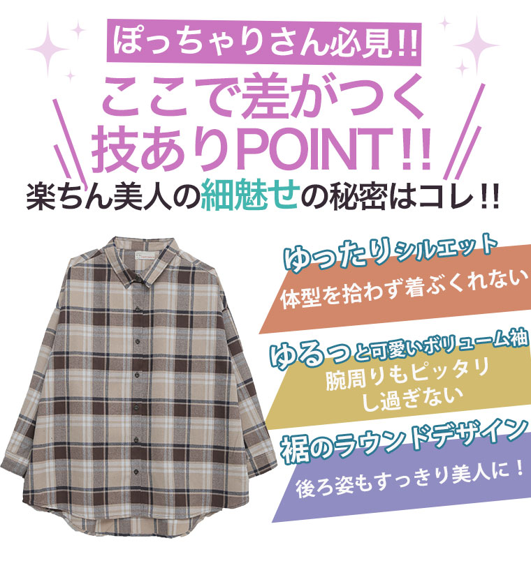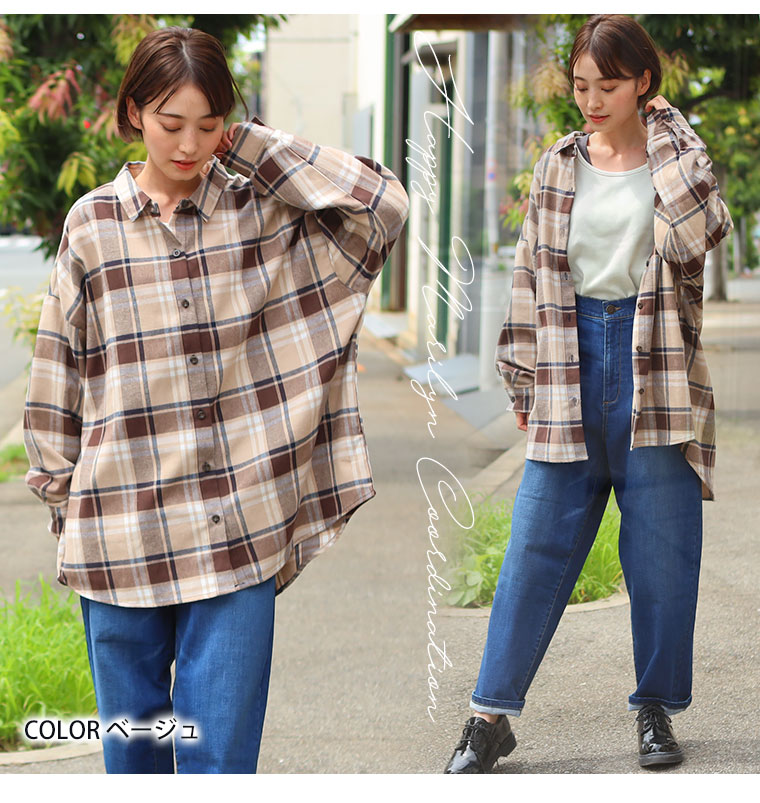 3. 大きいサイズ 【フランネルチェック】ビッグシルエットシャツ