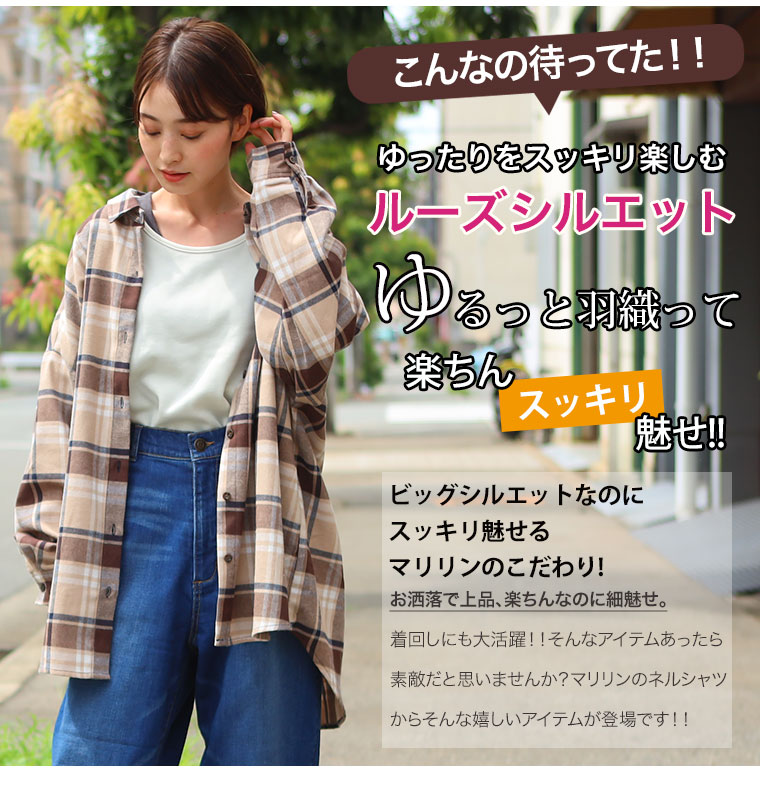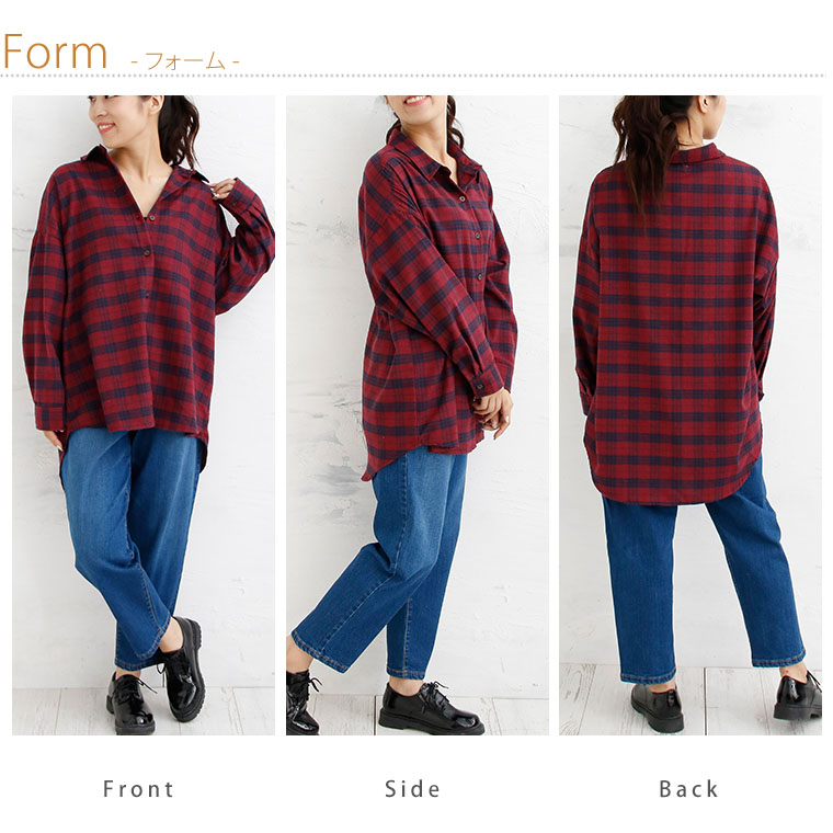 4. 大きいサイズ 【フランネルチェック】ビッグシルエットシャツ