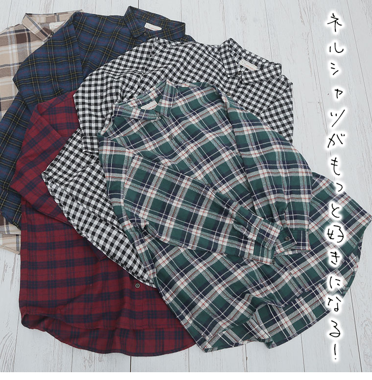 大きいサイズ 【フランネルチェック】ビッグシルエットシャツ