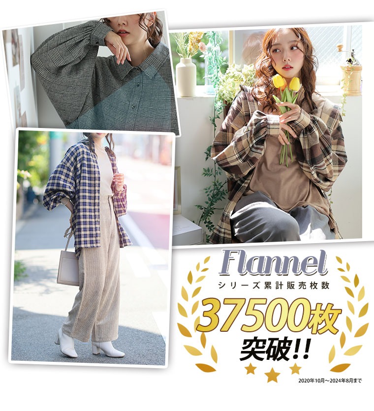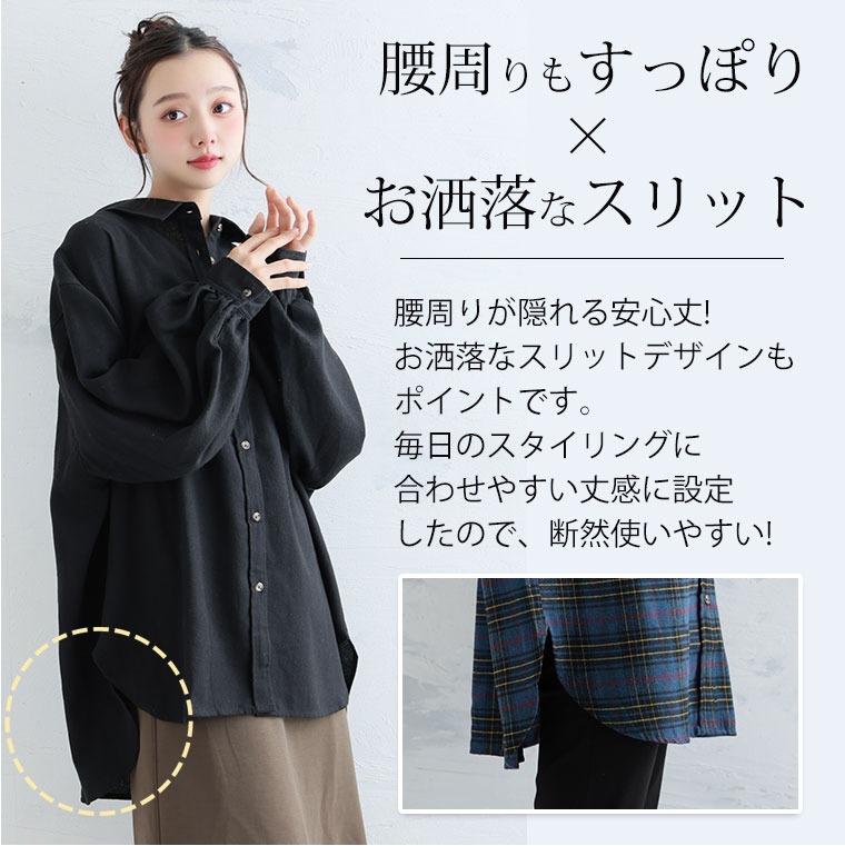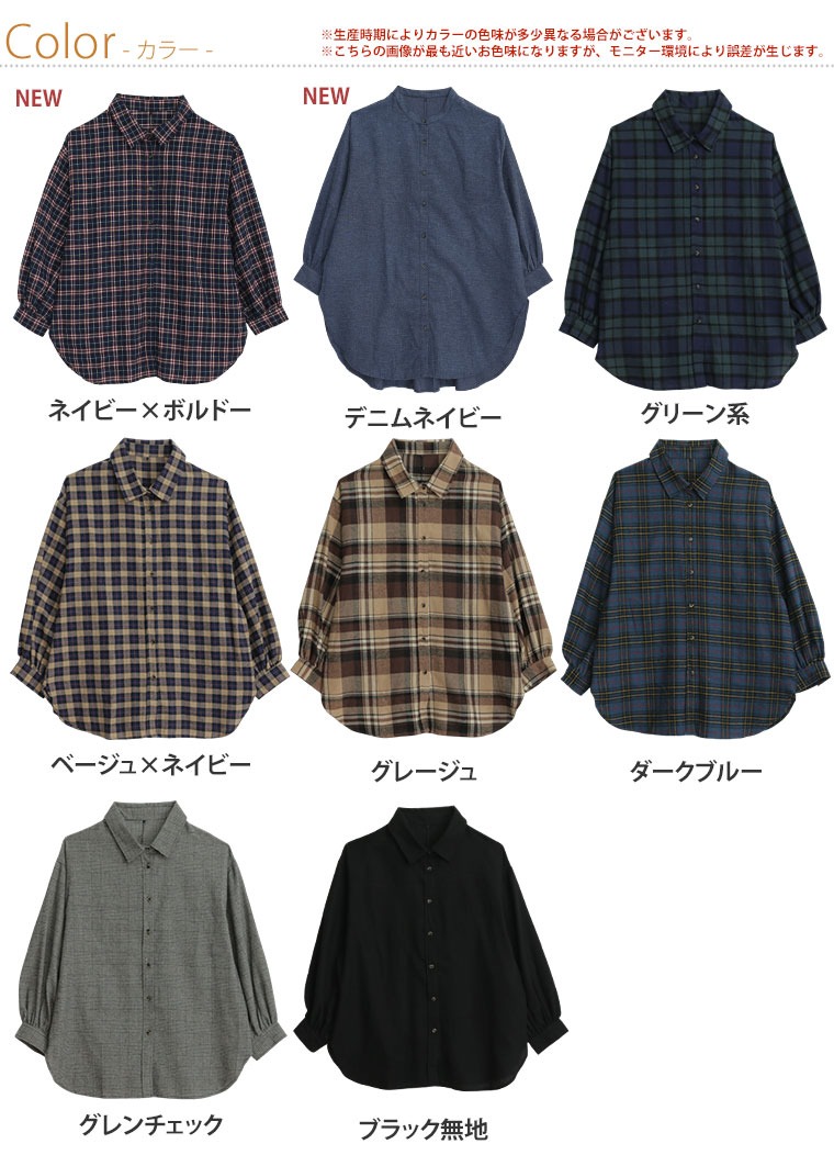 6. 大きいサイズ 新色追加!! フランネルチェック ボリューム袖 シャツ